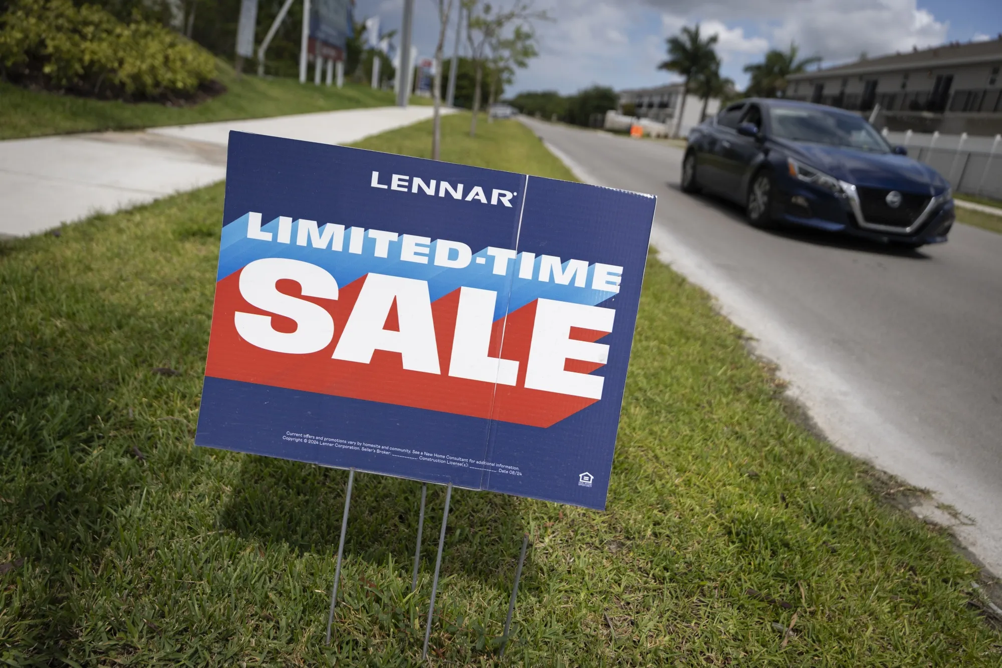 霍姆斯特德某住宅社區外張貼的售房廣告。攝影:Marco Bello/彭博社特朗普政府還限制了聯邦住房管理局(FHA)貸款的申請資格——這類貸款佔獨棟住宅貸款的16%——要求申請人必須擁有公民身份或永久居留權。此前,臨時身份者憑較低信用分和僅3.5%的首付即可獲得貸款資格。