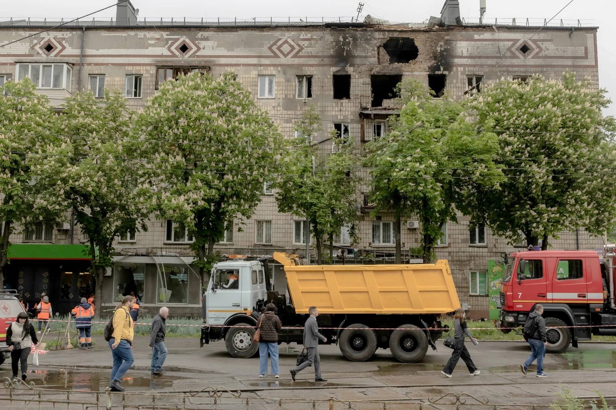 基輔一棟住宅樓在昨日俄羅斯無人機襲擊中受損。