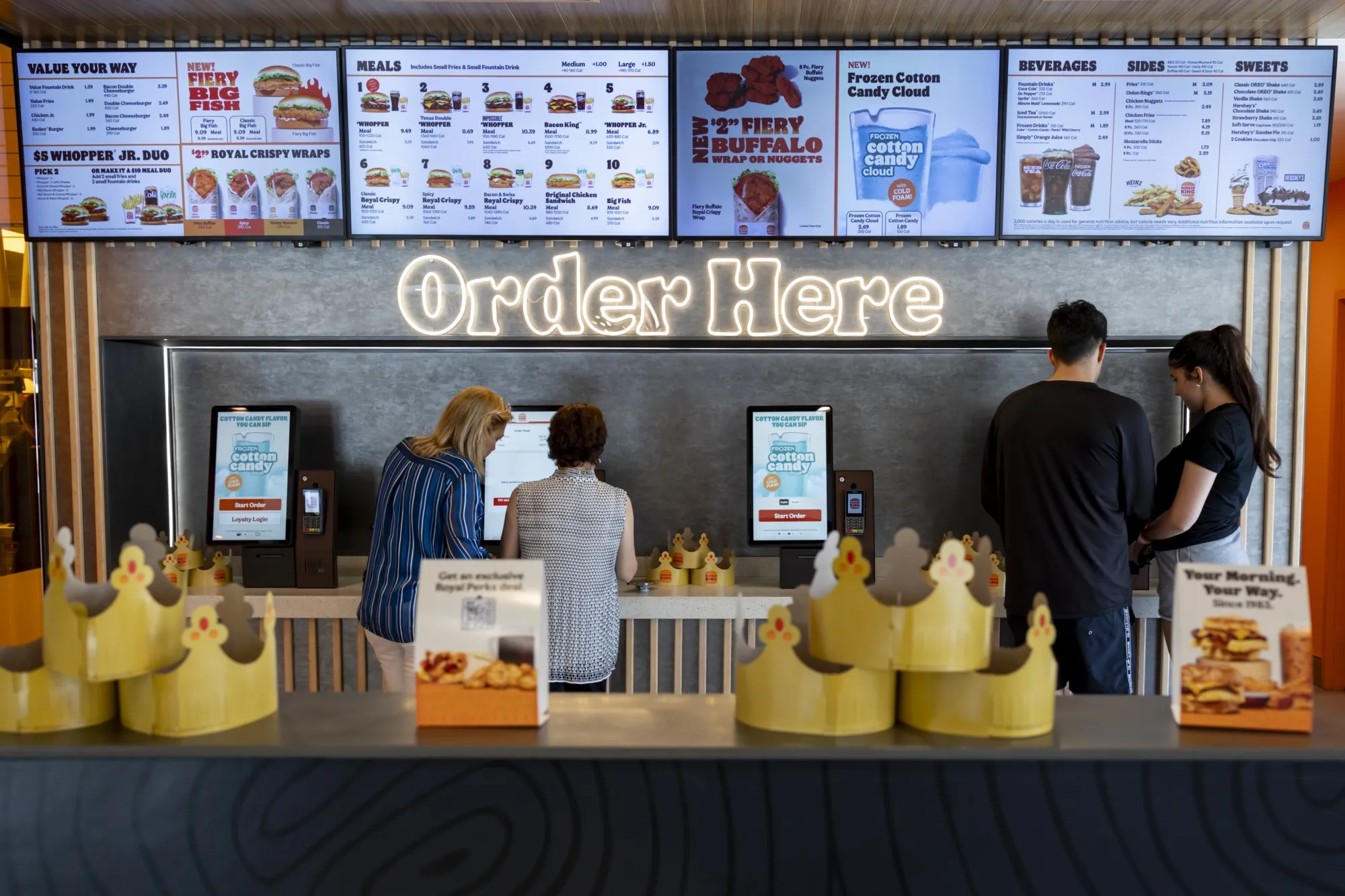 佛羅里達州漢堡王自助點餐站前的顧客。