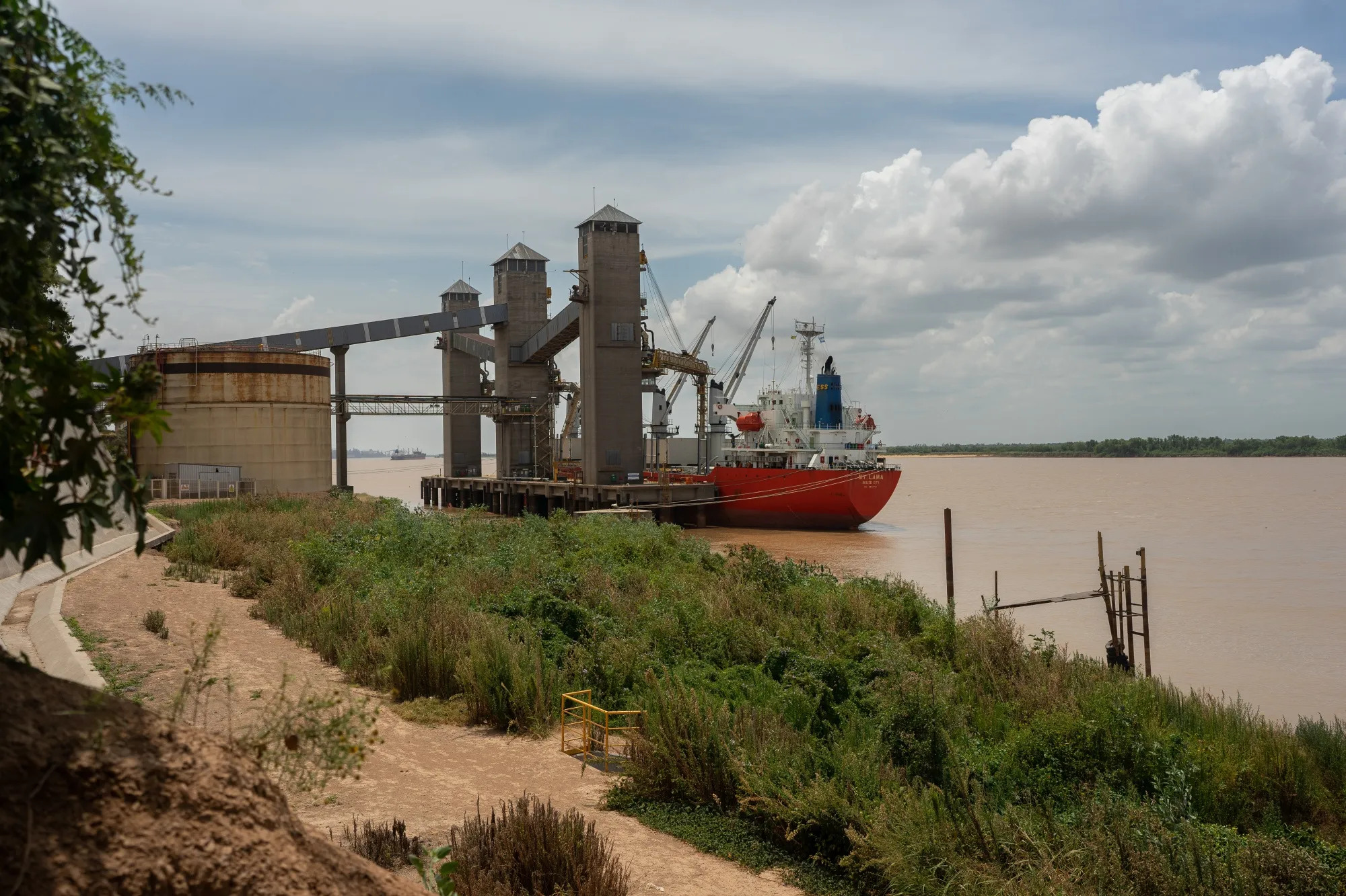 一月份,大豆被裝載到阿根廷羅薩里奧帕拉納河的一艘船上。