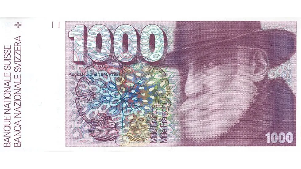 瑞士國家銀行第六套紙幣系列的1000法郎鈔票,法定流通期限至2000年。