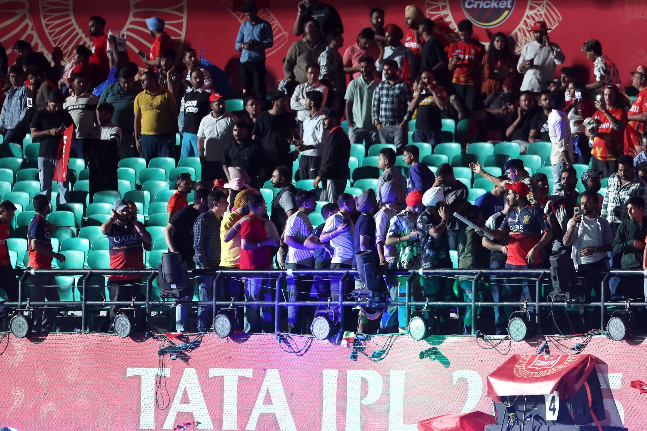 5月8日,印度達蘭薩拉喜馬偕爾邦板球場觀眾在疏散指令下撤離印度超級聯賽(IPL)比賽現場。
