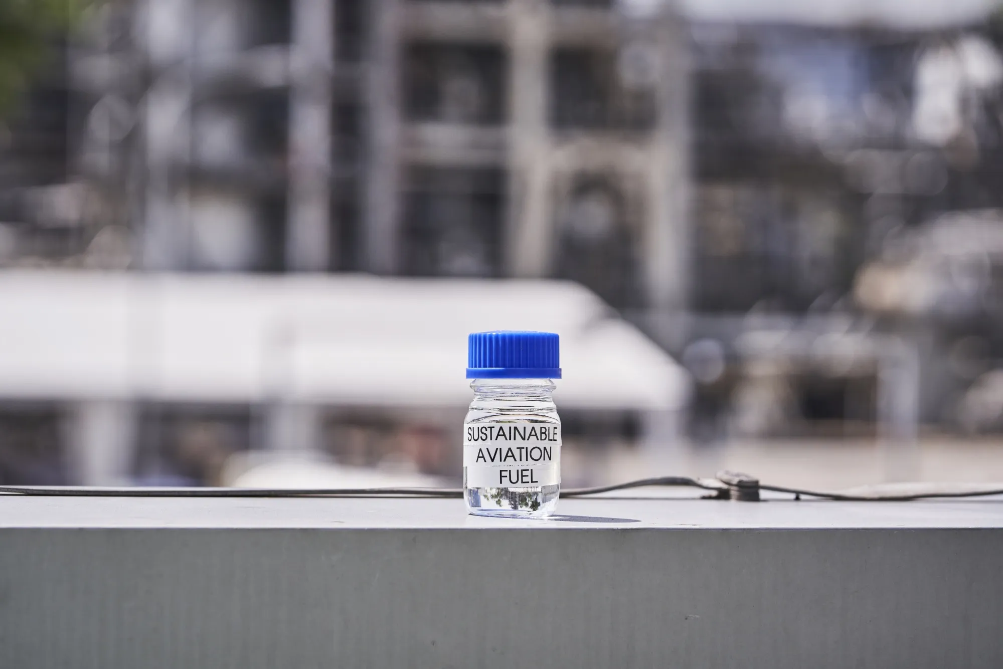 新加坡耐思特石油公司煉油廠生產的可持續航空燃料樣本。