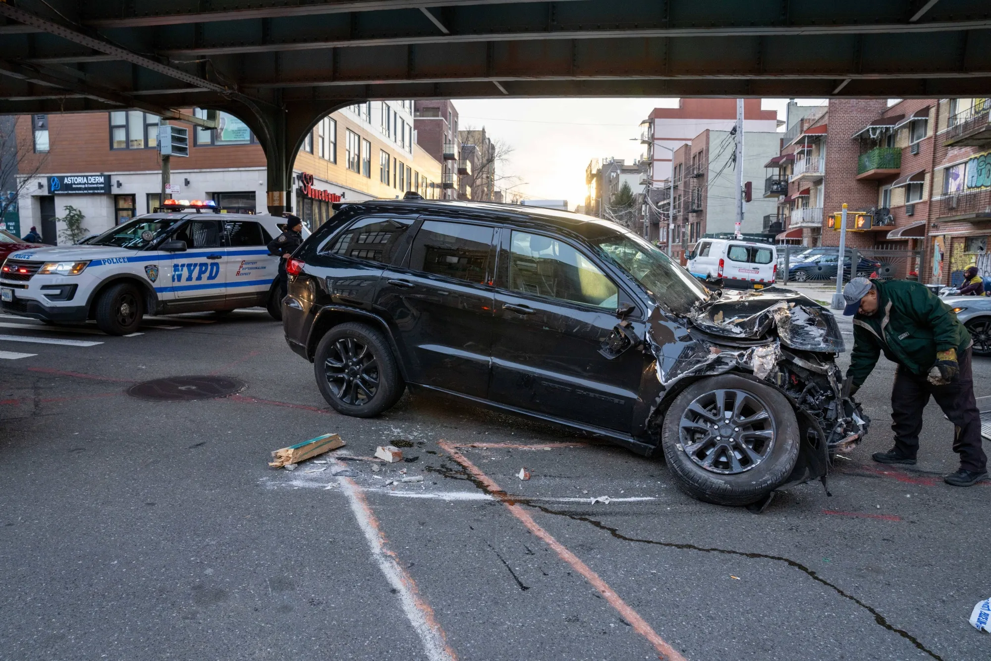 2024年1月皇后區一起車禍的現場。攝影師:Theodore Parisienne,來自《紐約每日新聞》,通過Getty Images發佈目前,攝像頭開出的罰單僅帶來有限後果——50美元罰款且不扣駕照分。市長埃裏克·亞當斯因放任2020年啓動的一項計劃到期而受到批評,該計劃允許市政府扣押一年內累計15次及以上學校區域超速或5次及以上闖紅燈的違規車輛(司機可選擇參加課程替代)。紐約市交通局評估認為該計劃對改變駕駛行為收效甚微。