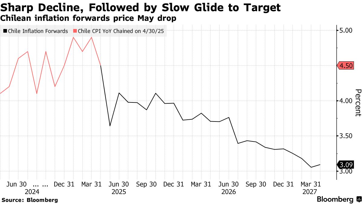 攝影師:Tamara Merino/彭博社智利週四公佈的通脹數據凸顯了市場的兩極分化:通脹預期持續下降,而利率預測卻保持穩定甚至上升。