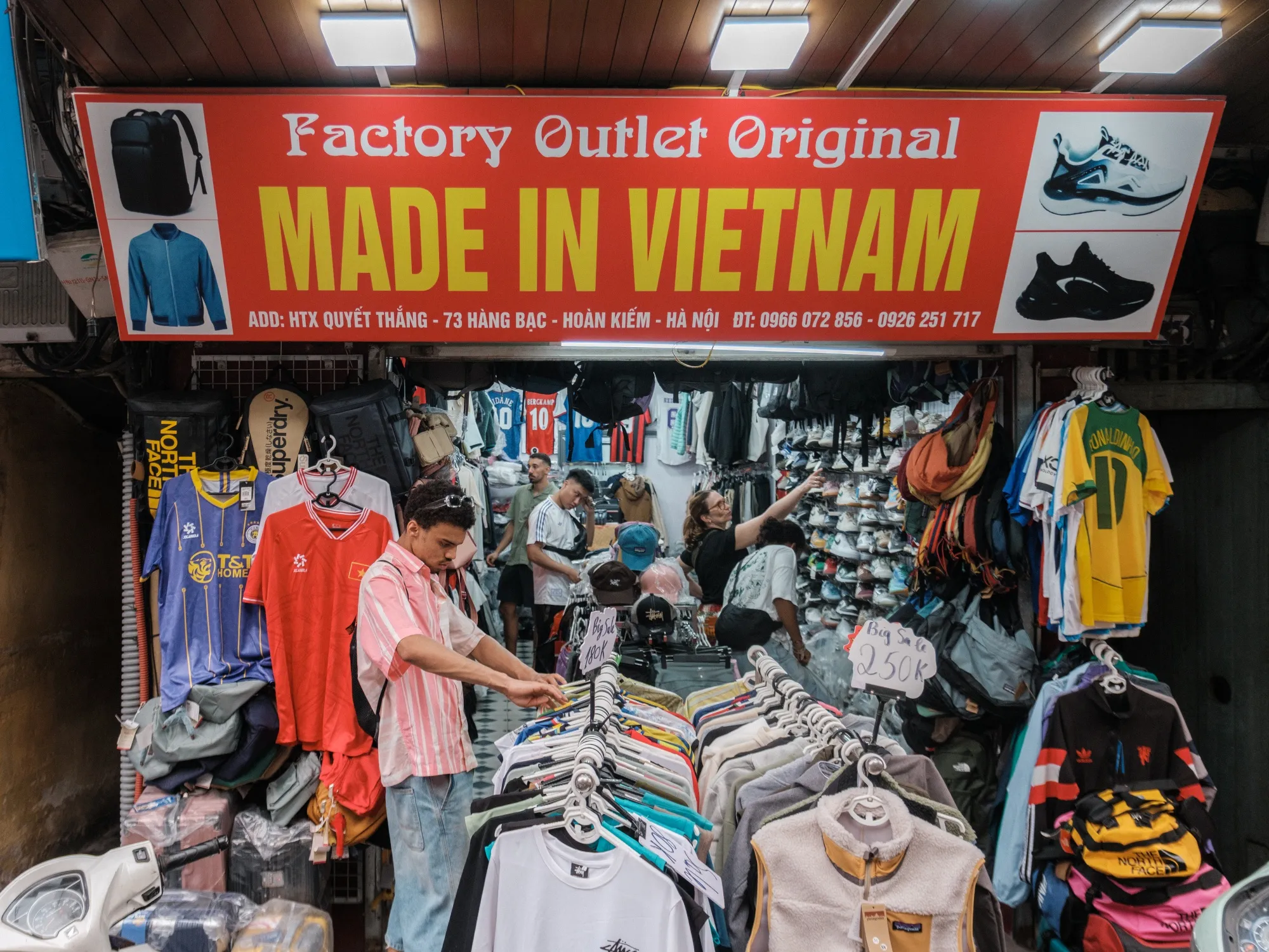 河內某商店出售的服裝與鞋類商品。
