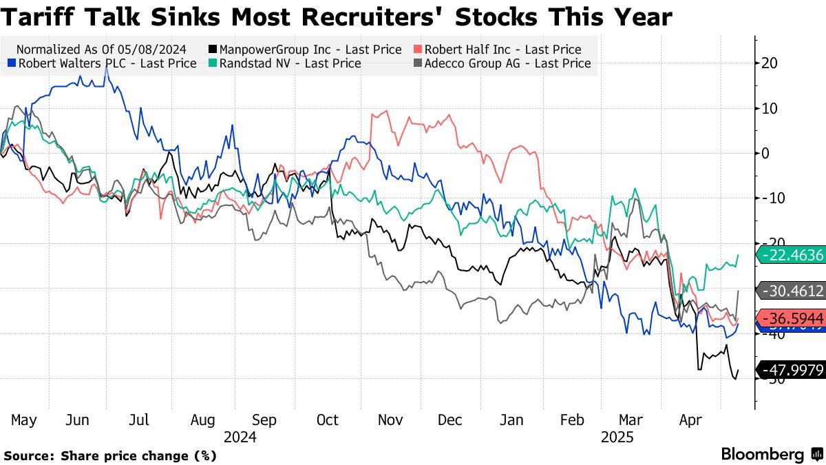 招聘機構一致警告,美國貿易政策正在抑制招聘活動。“我們已經在相對較低的招聘水平上運作,“任仕達集團首席執行官桑德爾·範特諾登達在財報電話會議上表示。