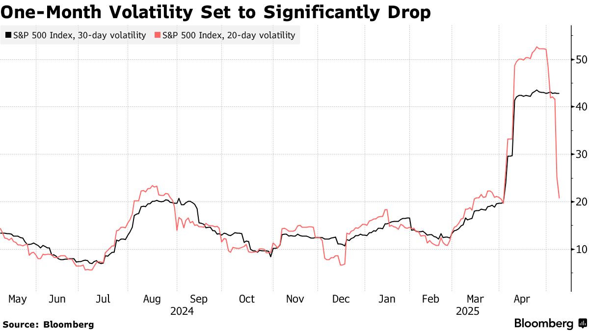 此外,根據Tier 1 Alpha的數據,由於標普500指數在4月9日創下9.5%的歷史性漲幅後,其一個月實際波動率在週四下降了17點。實際波動率的下降將導致風險溢價模型快速正常化,從而使這些投資者能夠增加敞口。