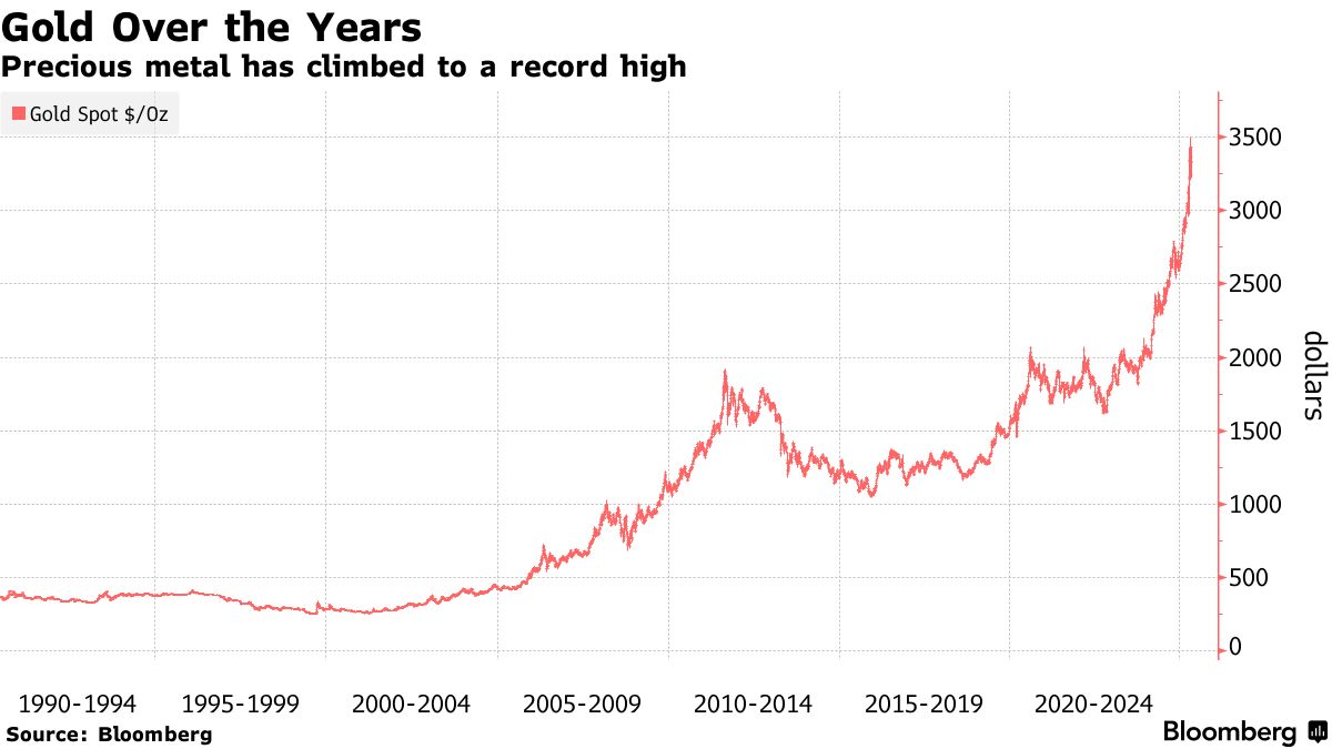 由於美國總統唐納德·特朗普的貿易戰引發的市場混亂和不確定性,金價飆升至歷史新高。中國的投機需求和各國央行的購買也推高了價格。