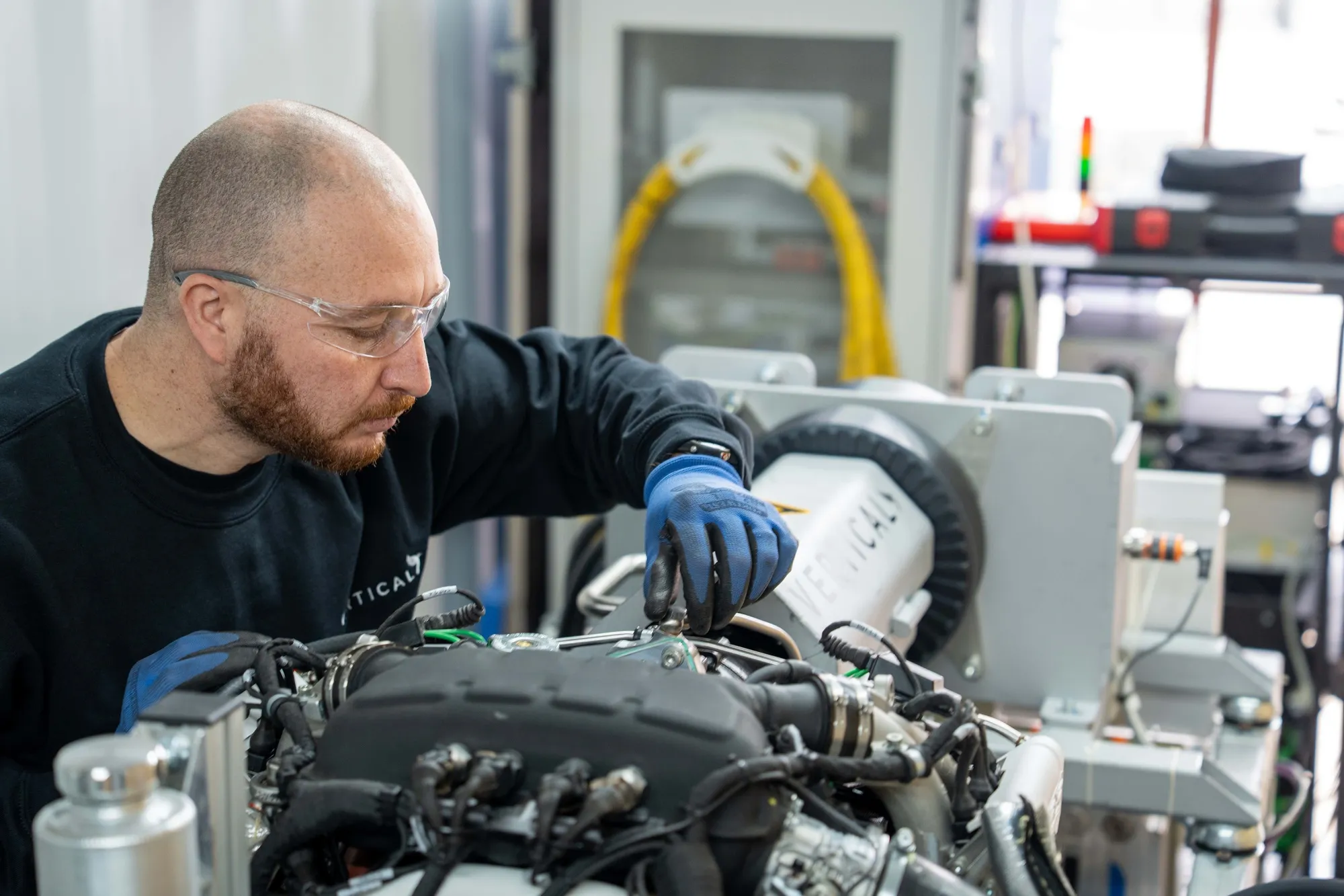 Vertical能源中心內,員工正在調試混合動力推進系統。圖片來源:Vertical Aerospace Ltd這一轉變標誌着該公司超越了最初用VX4機型實現機場零排放接駁的目標。這款全電動運輸機已獲得美國航空集團和日本航空公司等航空企業的意向訂單,但運營與財務挫折延緩了研發進程。