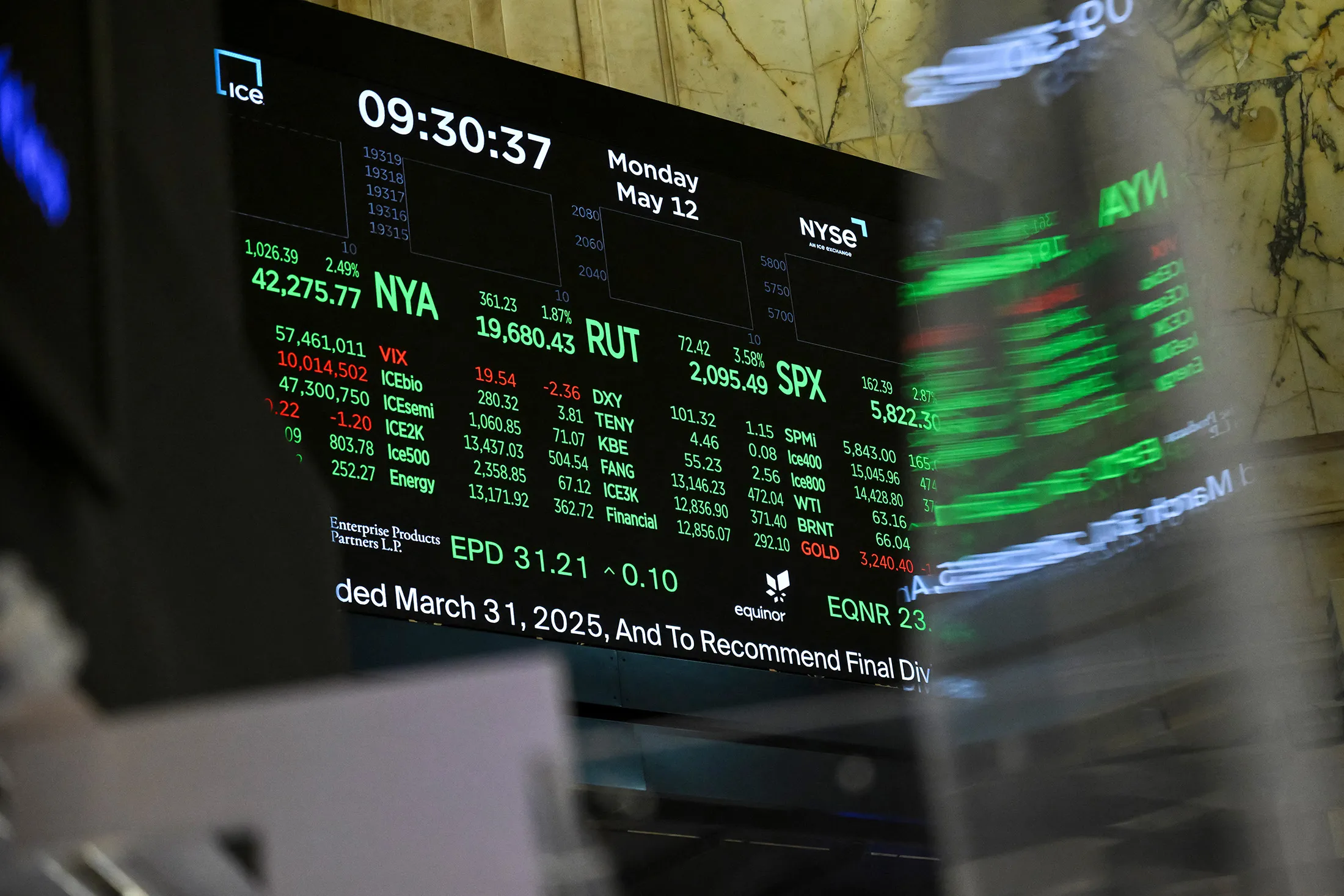 儘管只是暫時休戰,市場卻如同貿易戰結束般狂歡,納斯達克指數飆升逾4%,標普500指數漲幅超3%。交易員同時下調了對美聯儲今年降息的押注,目前僅定價2025年會有兩次降息。追蹤央行會議的利率互換合約顯示,到12月前僅有55個基點的寬鬆預期,較上週近75個基點有所下降。交易員仍預計首次25個基點的降息將在9月落地。以下是市場綜述。