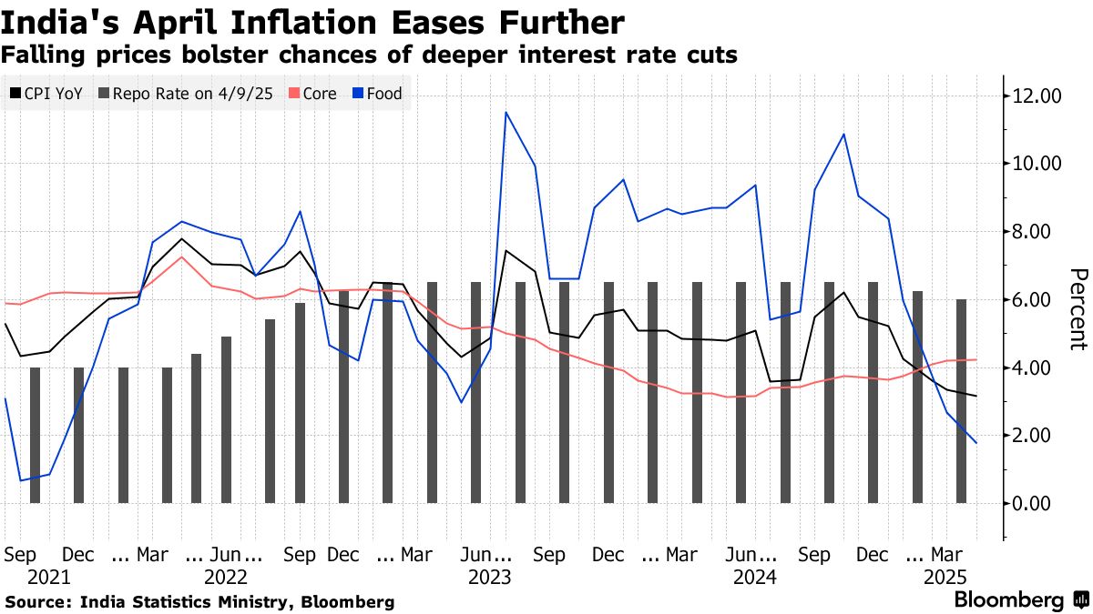 由於通脹數據低於印度央行4%的目標,加之印巴停火,央行將得以延續寬鬆貨幣政策,在已顯疲態的經濟中刺激增長。