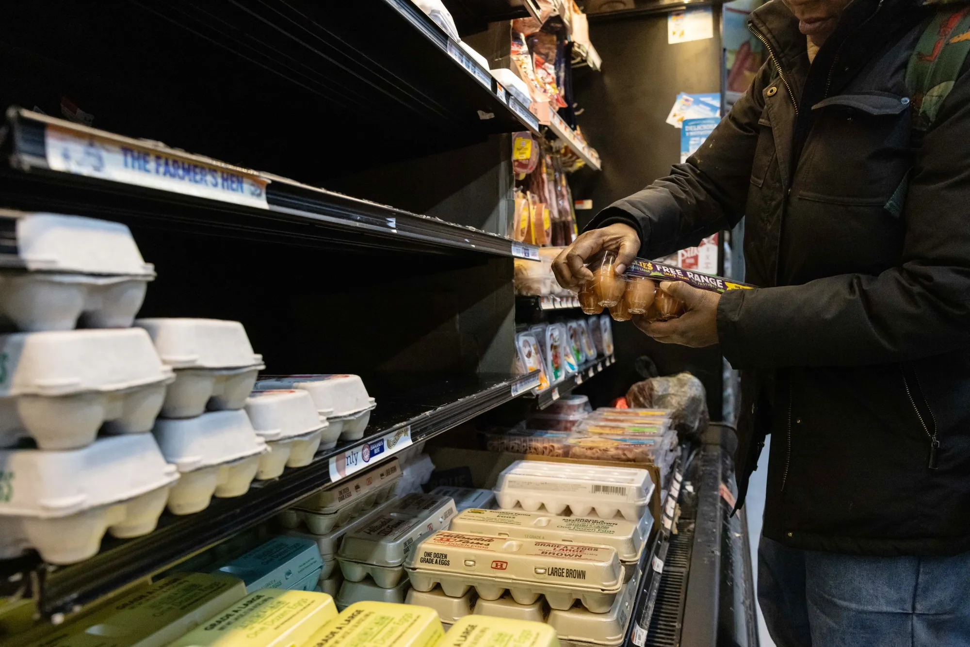一位顧客在紐約一家雜貨店檢查雞蛋。