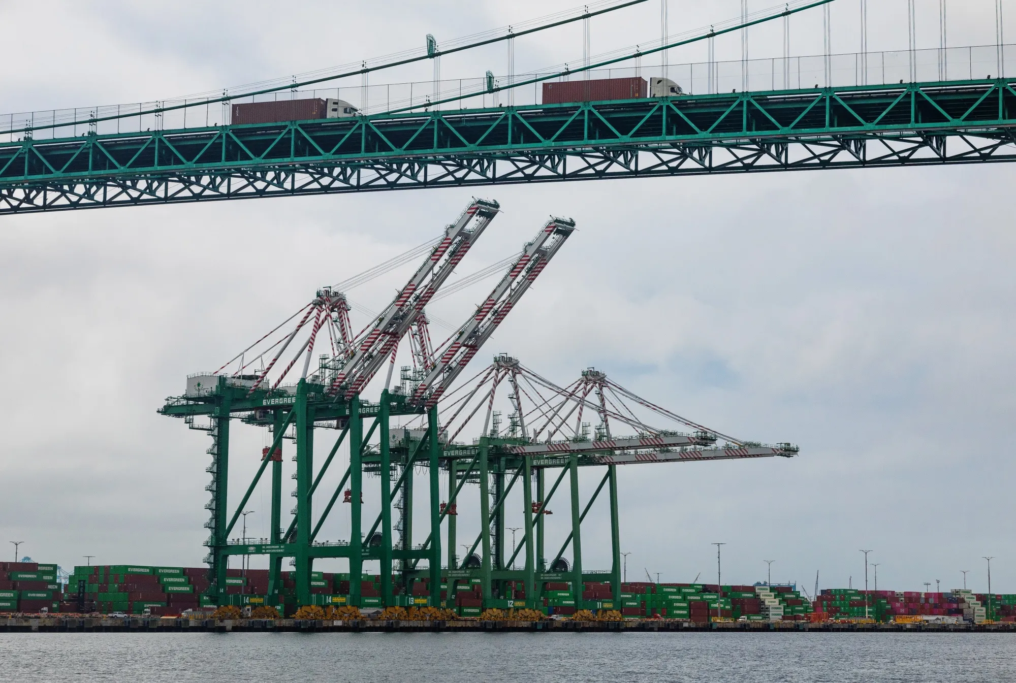 2025年5月12日星期一,美國加利福尼亞州洛杉磯港閒置的門式起重機。