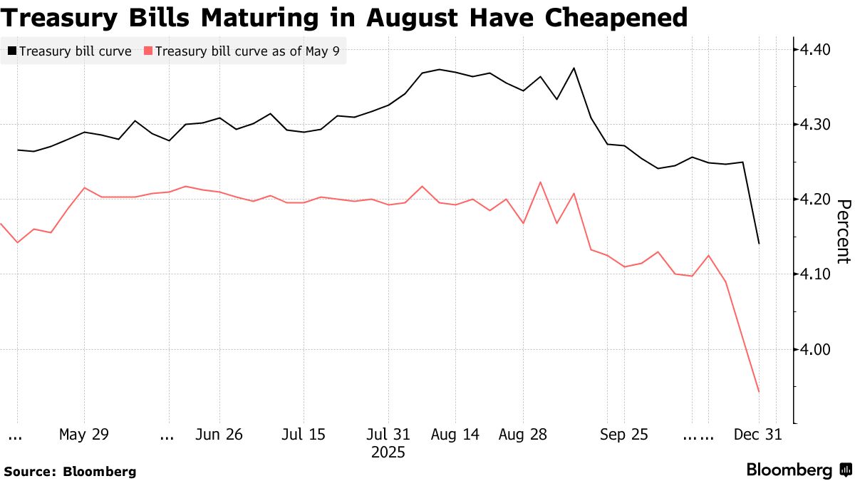 但即便考慮這些因素,8月到期的國庫券仍顯現出相對於收益率曲線其他部分的輕微折價。