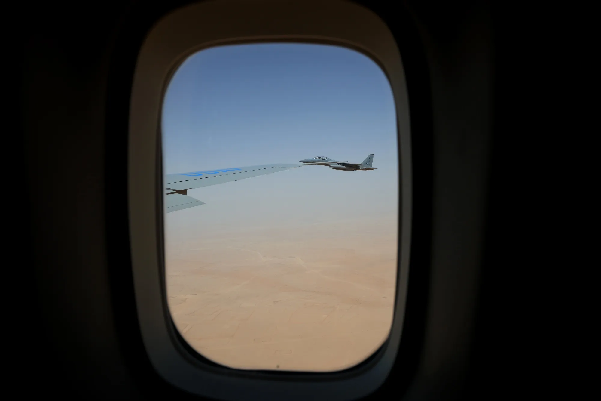 總統團隊似乎對護送空軍一號抵達利雅得機場的沙特F-15戰鬥機編隊印象深刻,並在社交媒體發佈了相關照片視頻。