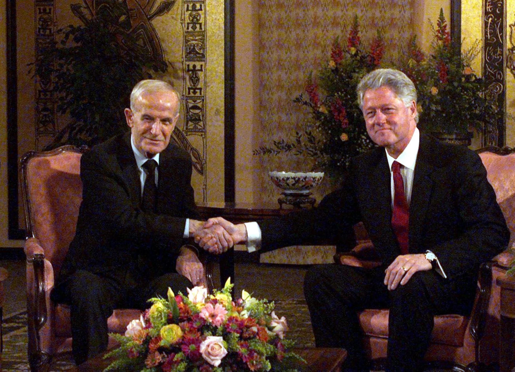 2000年,比爾·克林頓(右)與哈菲茲·阿薩德在日內瓦會晤。攝影師:SANA/AFP/Getty Images此後沙拉阿竭力向國際社會證明自己已改過自新,其政府不應為阿薩德時代付出代價。