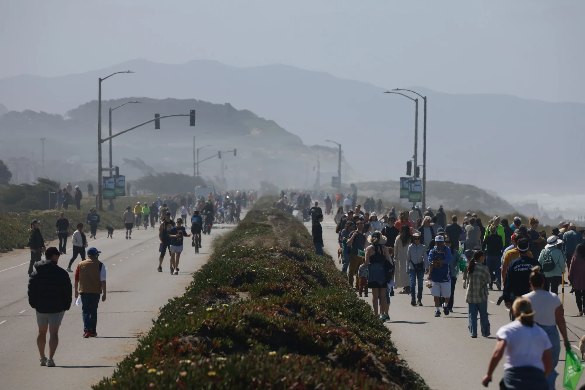 4月12日舊金山日落沙丘公園盛大開幕期間,遊客擠滿了昔日的大公路。