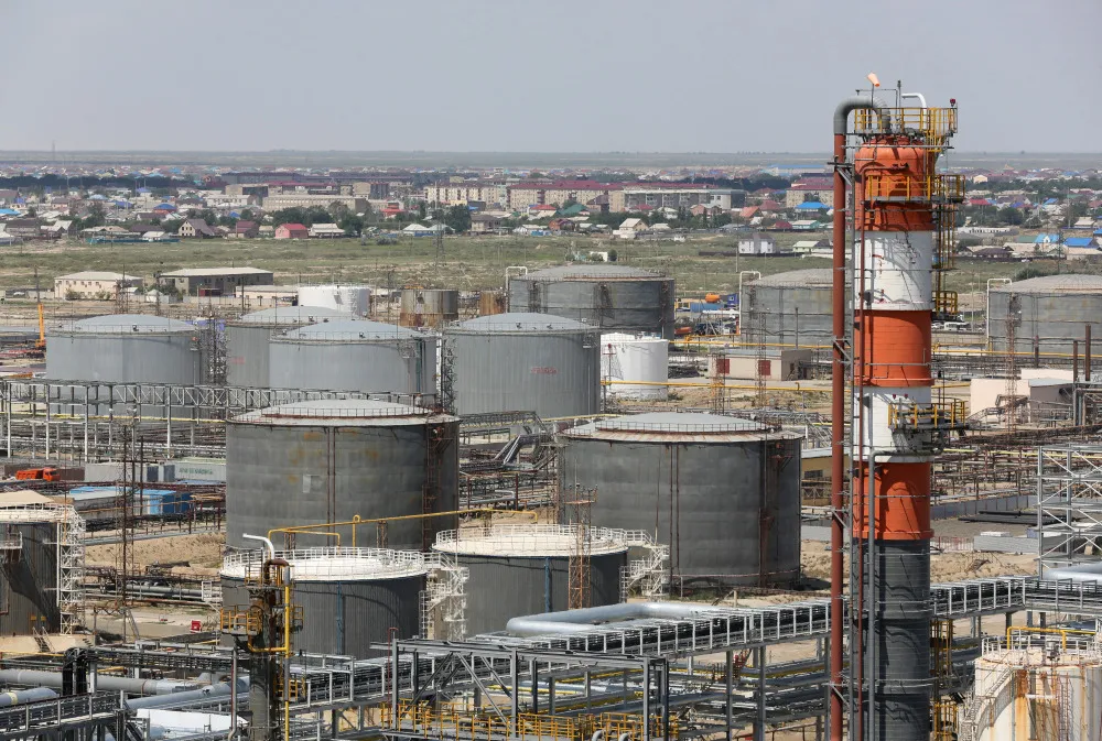 哈薩克斯坦阿特勞煉油廠的石油和燃料儲油罐。