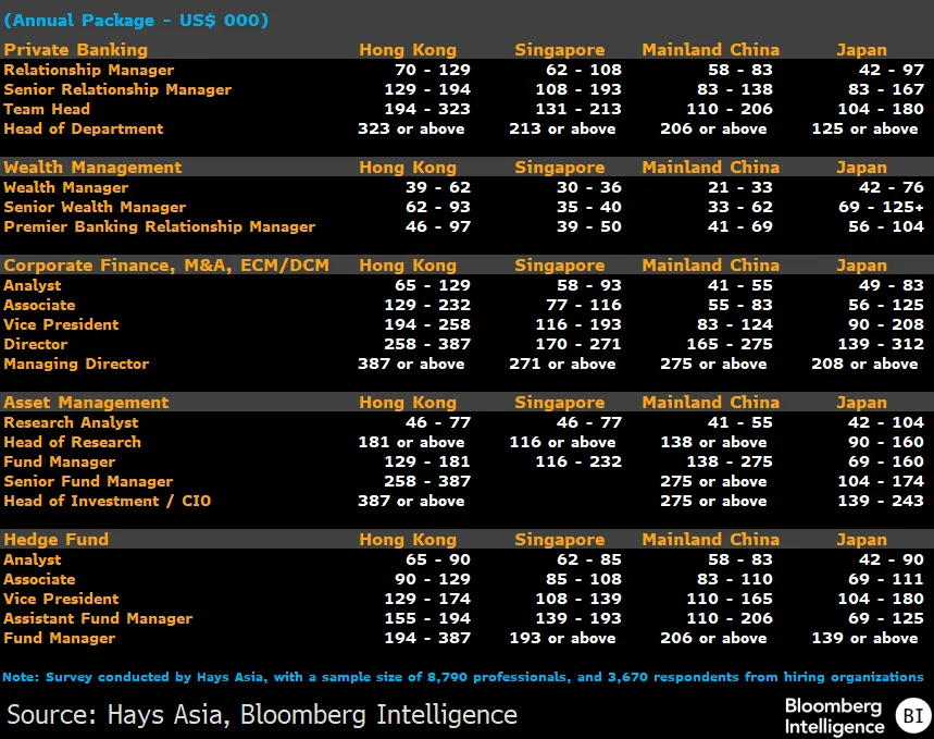 根據翰德亞洲2024年度調查,香港私人銀行客户經理收入較新加坡、中國大陸和日本同行高出46%,團隊及部門主管的薪酬差距更達三倍之多。