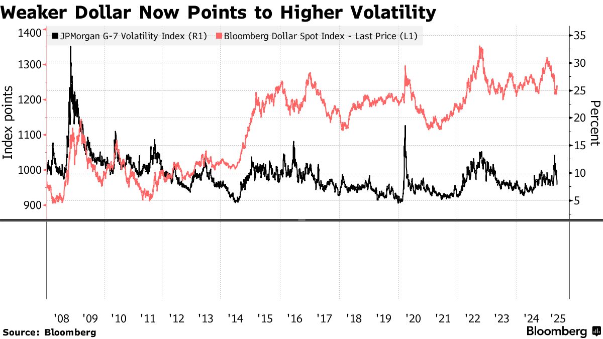 本週,美元與十國集團(G10)貨幣一項廣受關注的波動率指標之間的相關性降至七年來最低水平。而在過去15年的大部分時間裏,這種相關性一直呈正向關係。