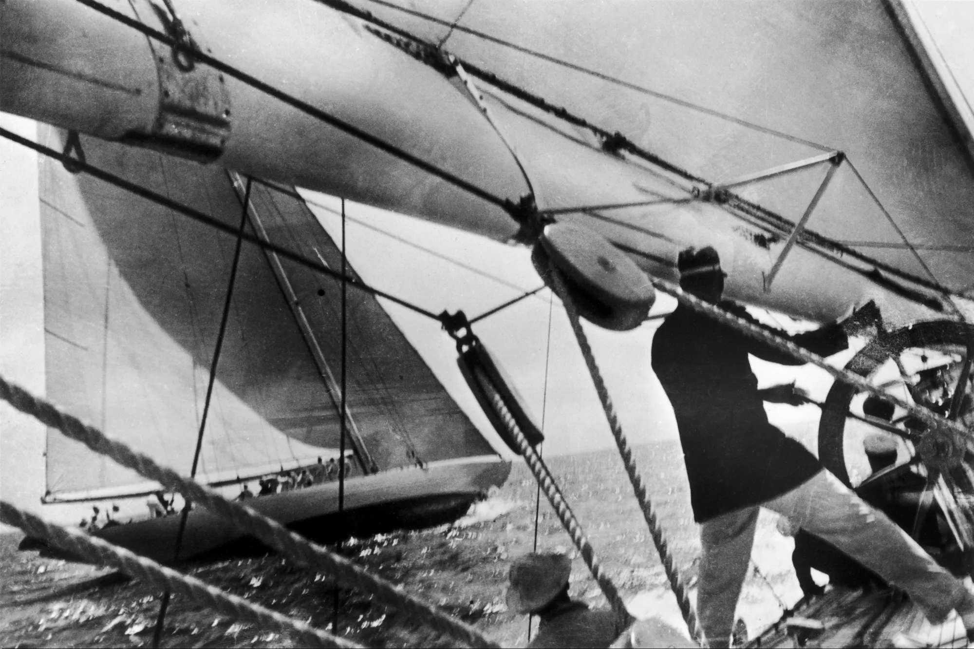 1934年第15屆美洲盃帆船賽期間,H.S.範德比爾特在他的遊艇"彩虹號"上。圖片來源:Keystone-France/Gamma-Keystone/Getty Images這項賽事至今仍基本沿襲1851年的原始賽制——當時紐約遊艇俱樂部駕駛名為"美洲號"的帆船,在懷特島附近擊敗了英國船隊。獲勝方有權決定下屆比賽的舉辦地點和規則,並直接晉級決賽。挑戰者需通過一系列一對一較量,決出與衞冕冠軍對決的資格。