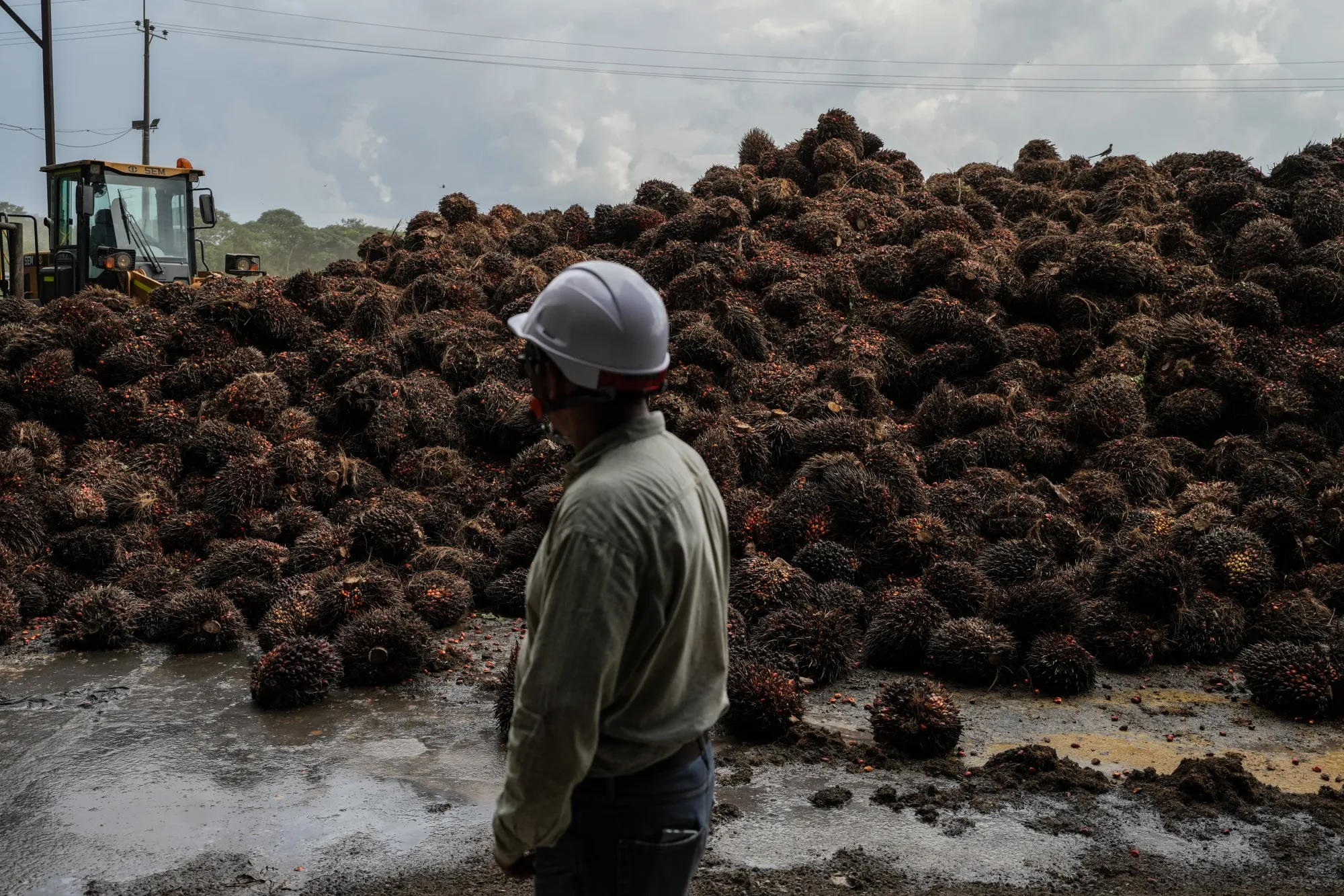 哥倫比亞瓜蒂亞港郊外一家棕櫚油廠的工人。照片:Ivan Valencia/Bloomberg“你無法工作,因為你不斷受到威脅,”地區首府比亞維森西奧附近的一位稻農説。“你會收到通知,要求你必須與某人合作,他們會在戰略地點召集會議,並把你置於監視之下。”