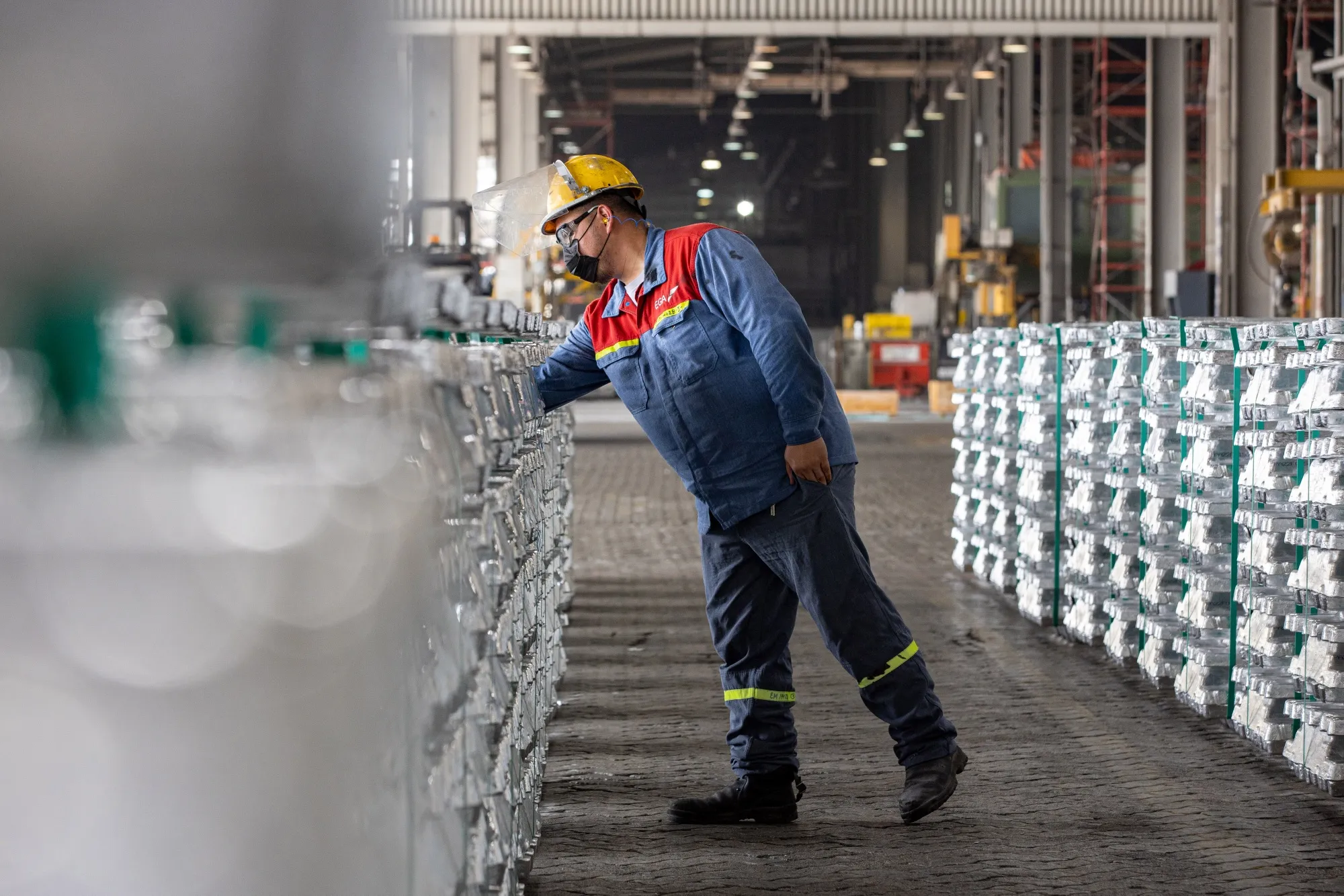阿布扎比阿聯酋全球鋁業公司Al Taweelah工廠的鋁錠。