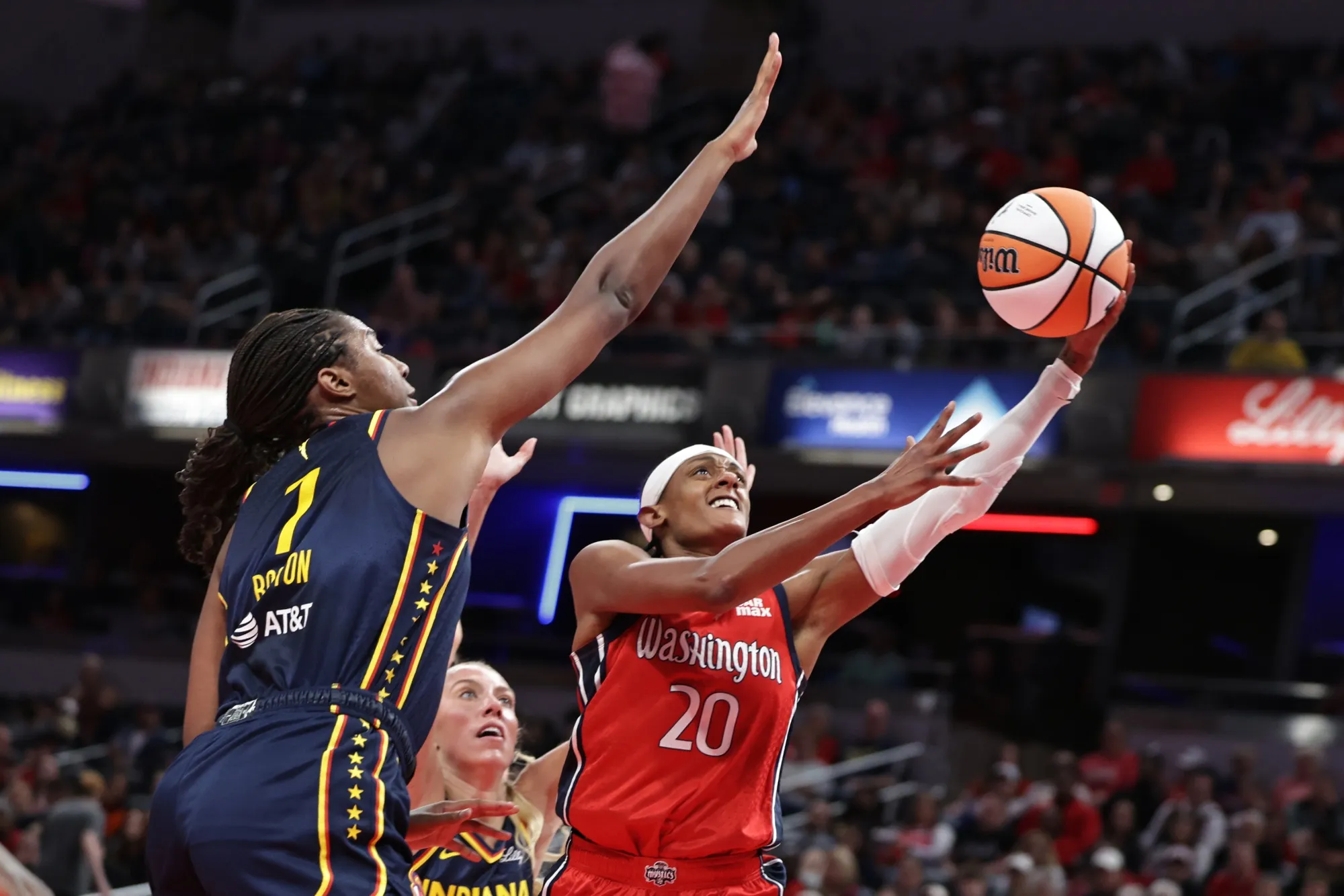 華盛頓神秘人隊的布里特妮·賽克斯在印第安納狂熱隊的阿莉婭·波士頓防守下投籃。攝影師:Geoff Stellfox/Getty Images 本週我們為您帶來大量新聞。一場鐵人三項賽事組織者正在籌款;我們告訴您切爾西女足目前的價值;我們還與多支球隊老闆泰德·萊昂西斯進行了對話(就在華盛頓首都隊輸掉斯坦利杯季後賽之前),瞭解他的建設計劃進展以及他對未來體育觀賽方式的看法。