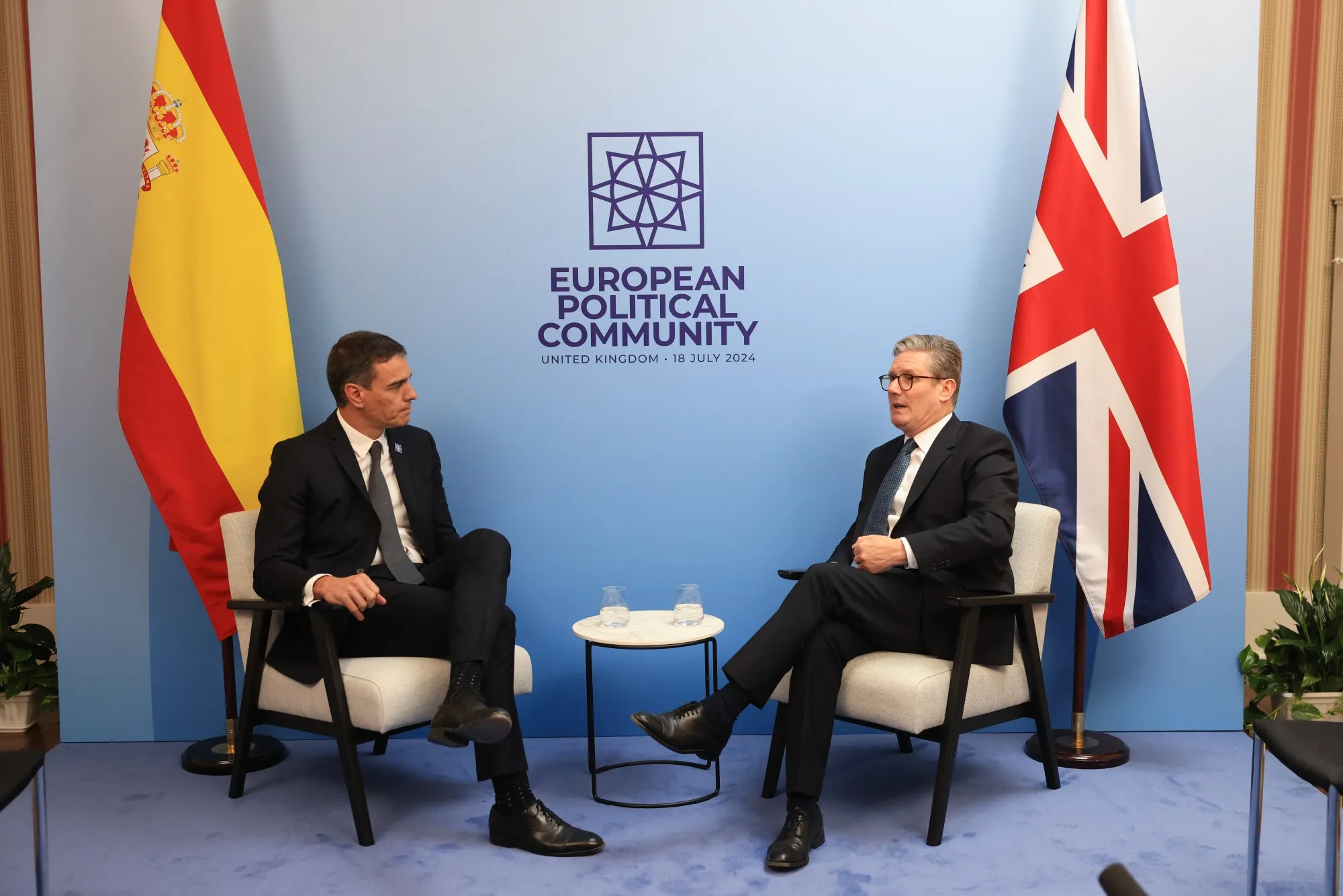 2024年,斯塔默(右)與西班牙首相佩德羅·桑切斯在布萊尼姆宮攝影師:克里斯·拉特克利夫/彭博社然而正如許多人預料到的那樣——或許斯塔默當時也有所察覺——自去年七月壓倒性勝選後的十個月裏,政治挑戰已愈發明顯。奈傑爾·法拉奇的改革黨正在民調中領先,接連贏得補選並在地方選舉中拔得頭籌。