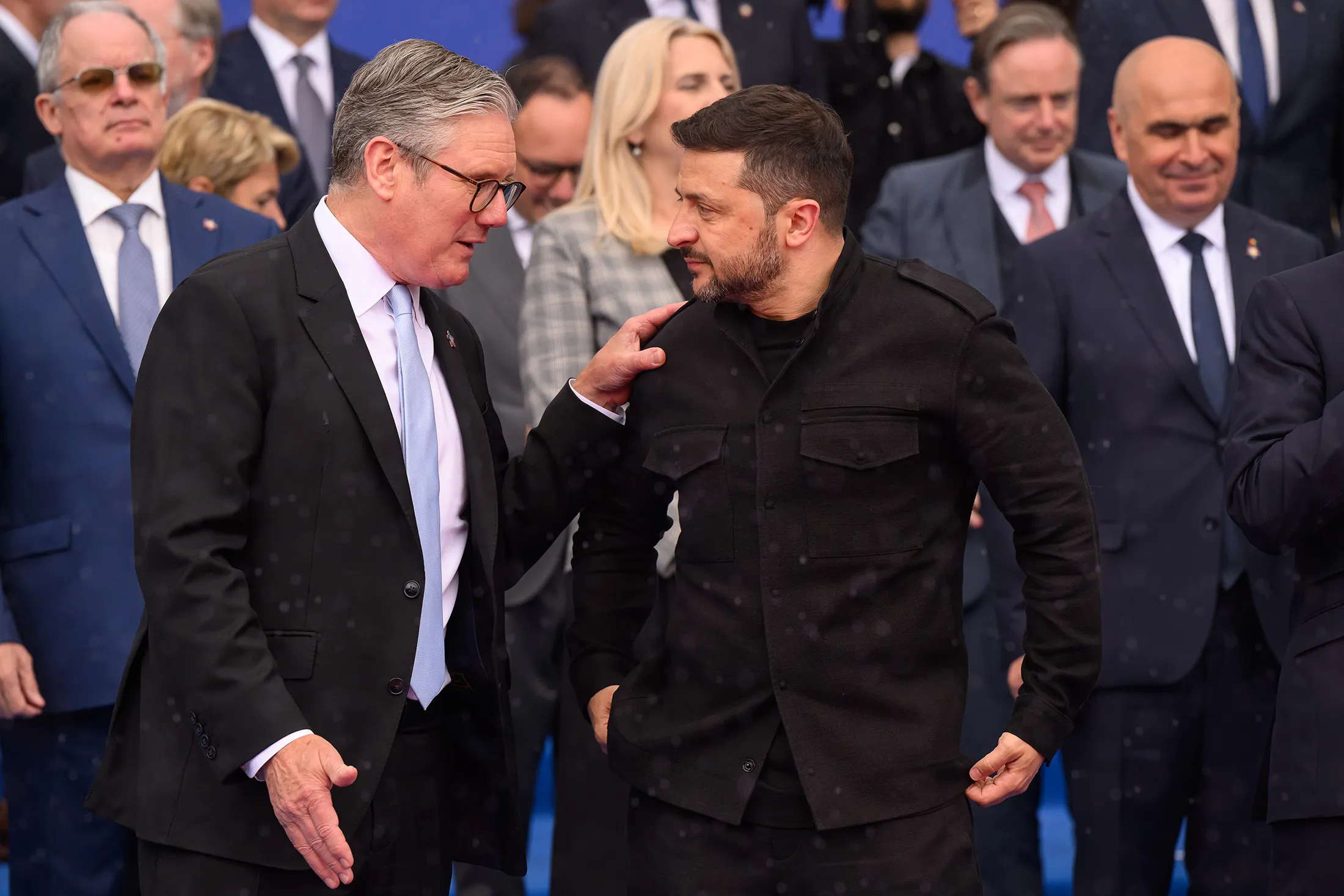 5月16日阿爾巴尼亞地拉那峯會上,英國首相基爾·斯塔默(左)與烏克蘭總統弗拉基米爾·澤連斯基在合影環節交談。攝影師:Leon Neal/Getty Images但據知情人士透露,私下裏歐洲官員對特朗普反覆無常的態度感到沮喪與不解。一位官員表示,他們希望本週的事態能讓特朗普明白俄羅斯對和談缺乏誠意,美國應作出強硬回應。