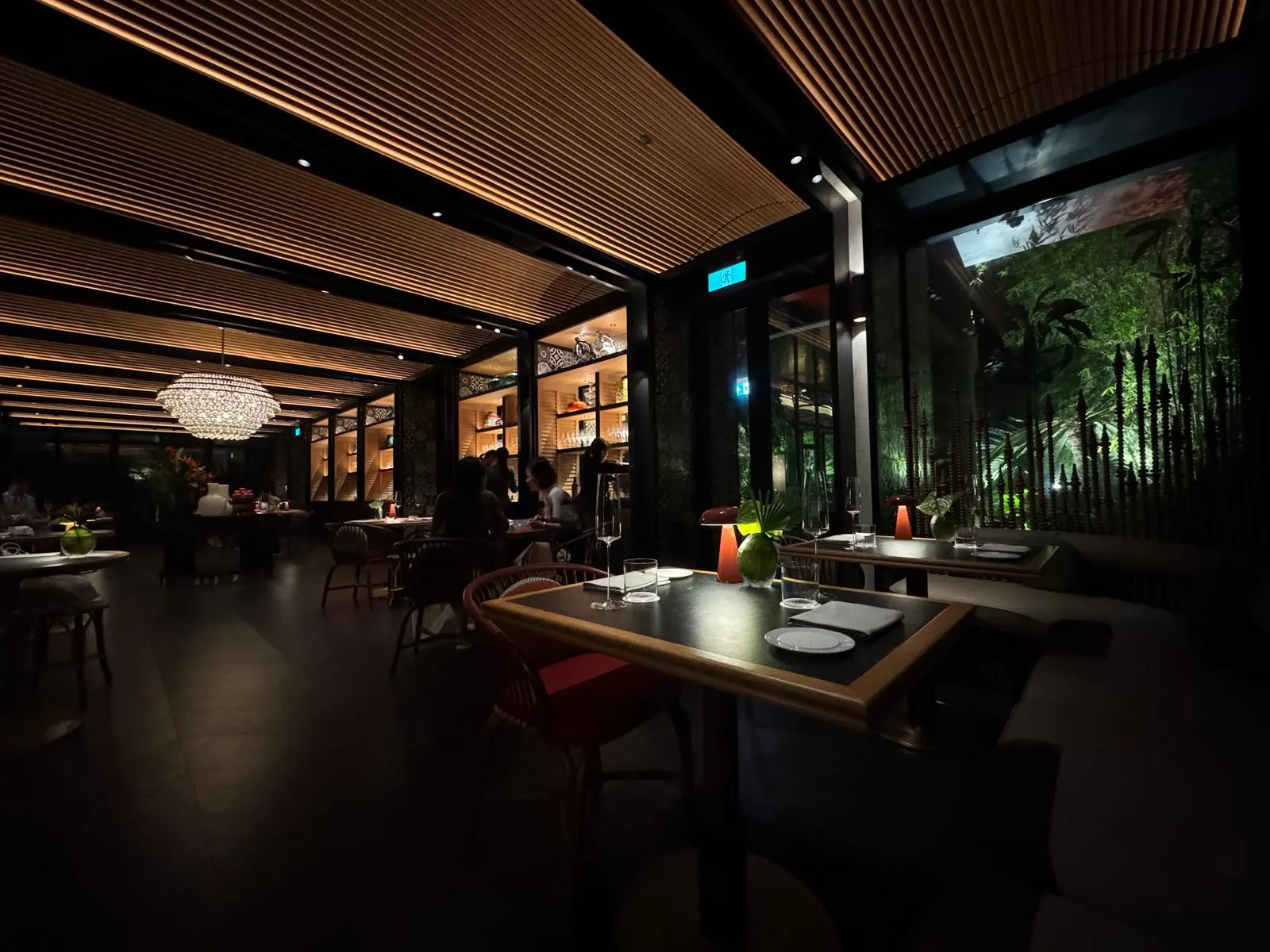 浪漫晚餐如何? 温馨的裝潢搭配娘惹風格彩磚,營造出私密氛圍。雙人座席充足,大幅觀景窗後的綠植幕牆巧妙隔絕了市中心喧囂。