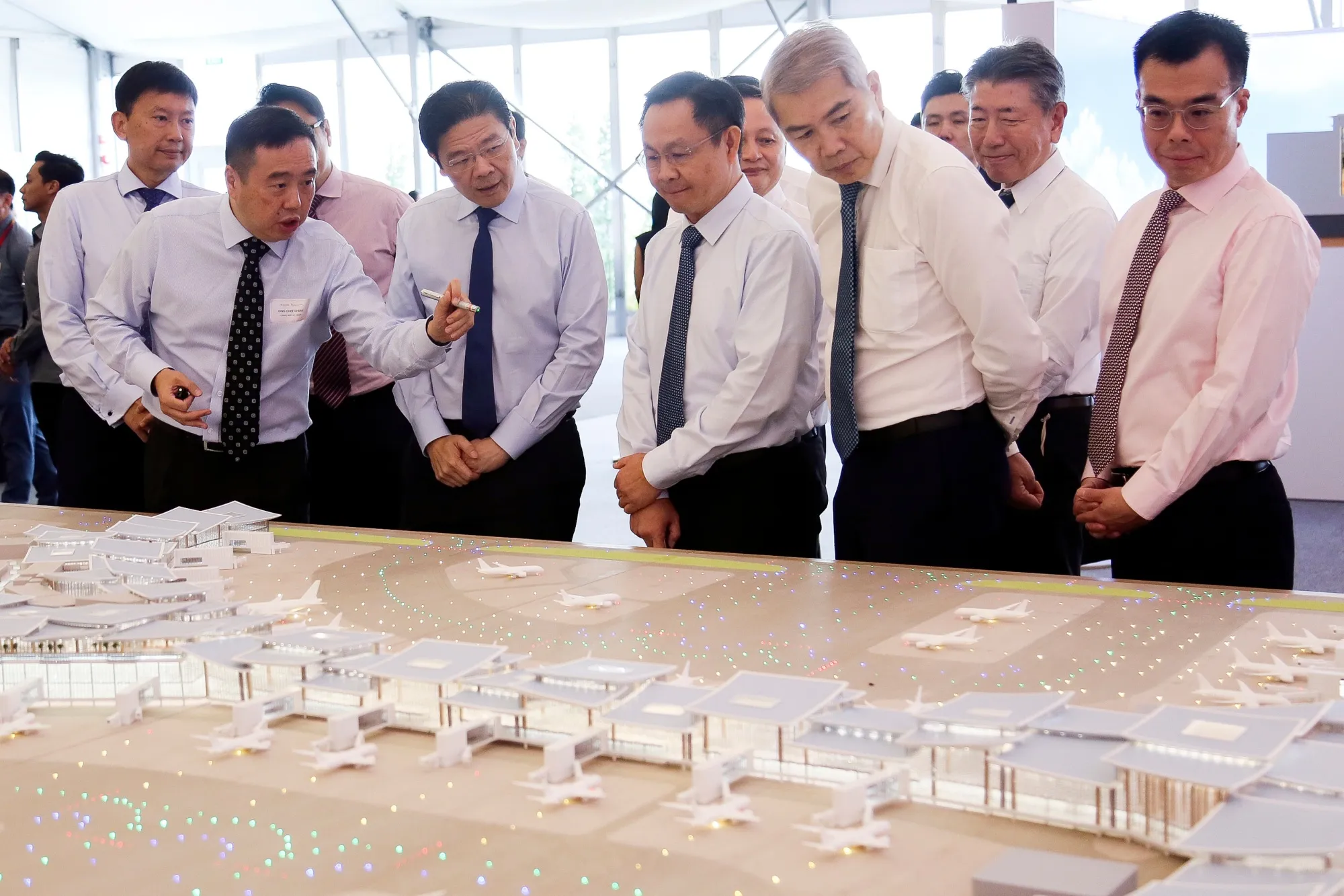 黃循財出席了第五航站樓奠基儀式。攝影師:Ore Huiying/彭博社在新冠疫情期間擱置兩年多後,T5項目將強化新加坡最成功的經濟支柱之一。