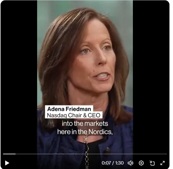 納斯達克自2008年起在 Nordic 地區運營,並將歐洲總部設於斯德哥爾摩。納斯達克董事長兼首席執行官阿德娜·弗裏德曼讚揚了當地政府的扶持計劃和其他經濟政策。她表示:“政府有意採取諸多措施確保企業能夠承擔風險、實現增長擴張,最終成為全球參與者。同時他們建立了完善的體系,鼓勵公民投資這些創新企業。”