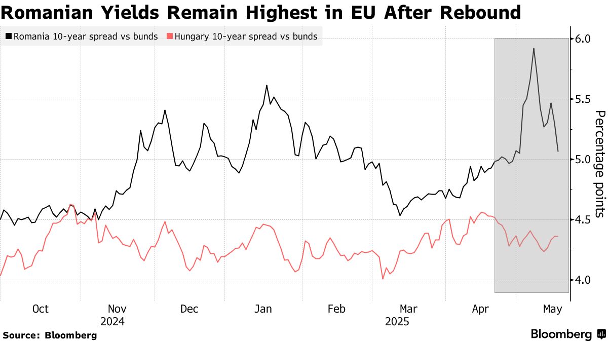 在布加勒斯特市長尼庫索爾·丹戰勝極右翼領袖喬治·西米翁、確保國家繼續走親歐路線後,這個黑海國家的貨幣和美元債券領漲新興市場,股市亦同步走高。週日的決勝輪投票為持續數月的動盪畫上句點——這是自1989年獨裁者尼古拉·齊奧塞斯庫政權垮台以來最嚴重的政治危機。
