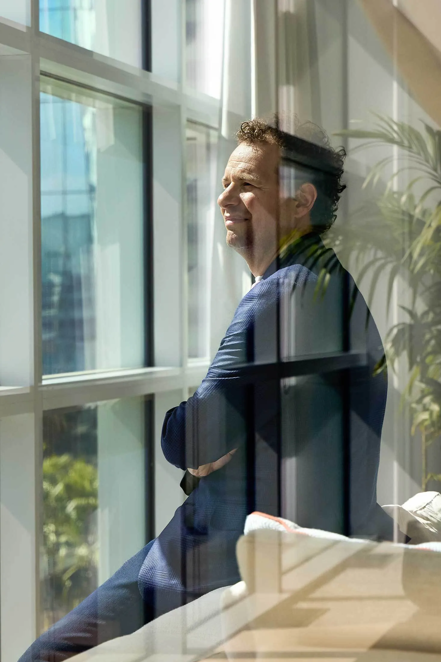 三月接待彭博商業週刊記者時,他並未穿着細條紋西裝;阿莫迪顯然很享受迴歸被同事克拉克稱為"舒適套裝"的裝扮——彈性灰色運動褲和同色系休閒T恤。他表示這身打扮"有助於思考”。
