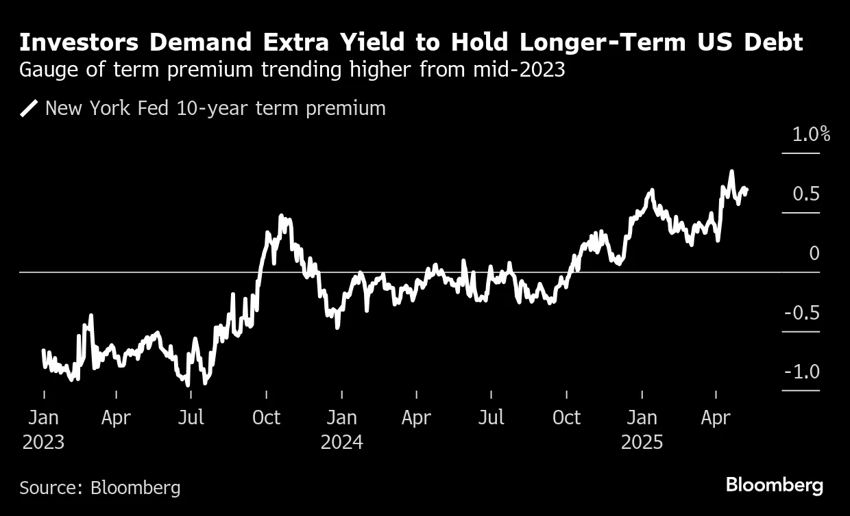 僅本月十年期國債收益率就上漲了約0.3個百分點。市場越來越反映出投資者要求更高的風險溢價來承擔持有美國長期債務的風險。但即便是兩年期以內的短期債券,收益率也超過了4%。