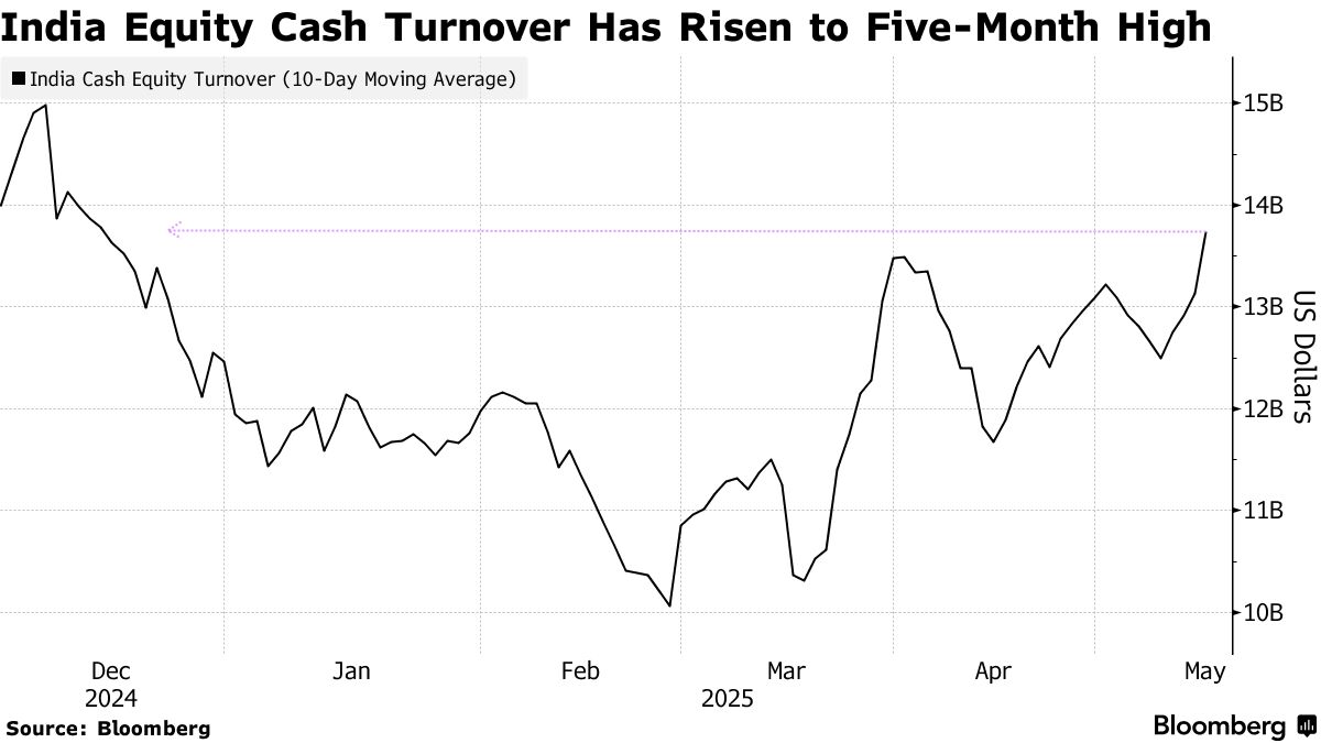 印度每日股票現金交易額上週接近140億美元,創下五個月以來的最高水平。這一激增源於該國股票資本市場的快速復甦,期間出現了大量大宗交易。大額投資者的二次股票銷售達到近20億美元,成為11個月中最繁忙的一週。