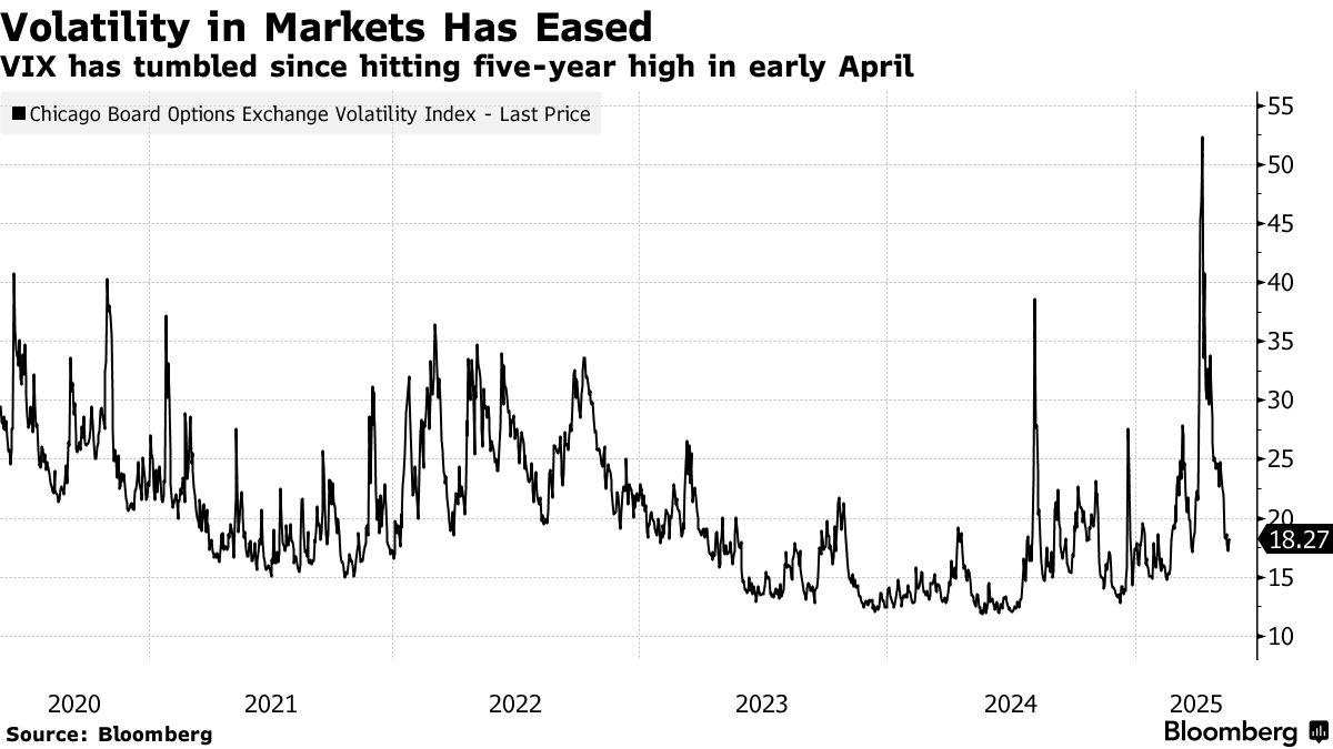 衡量資產價格波動的華爾街"恐慌指數"VIX自4月8日觸及五年高點後持續回落。