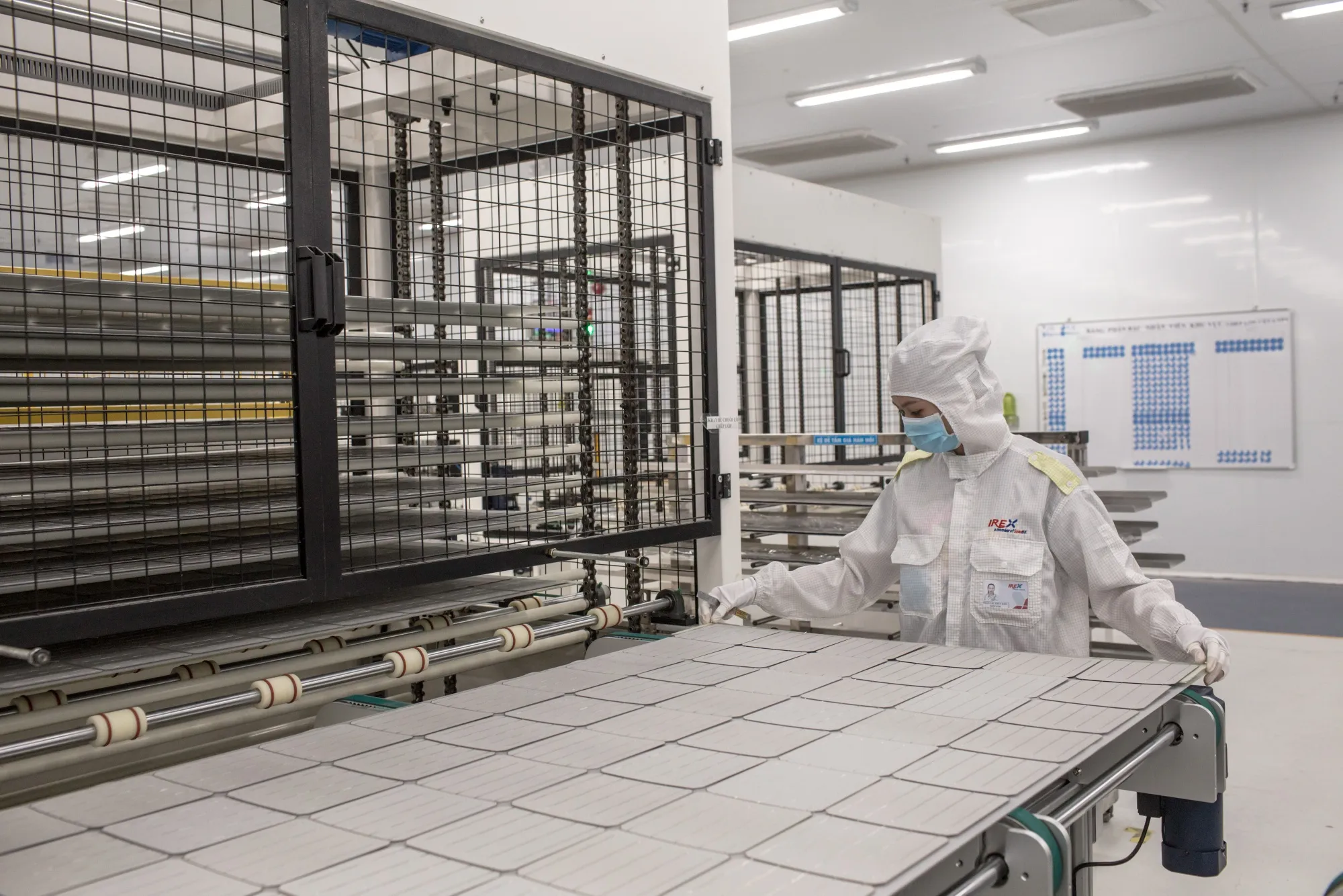 越南頭頓市某製造工廠,一名工人正在處理光伏電池。