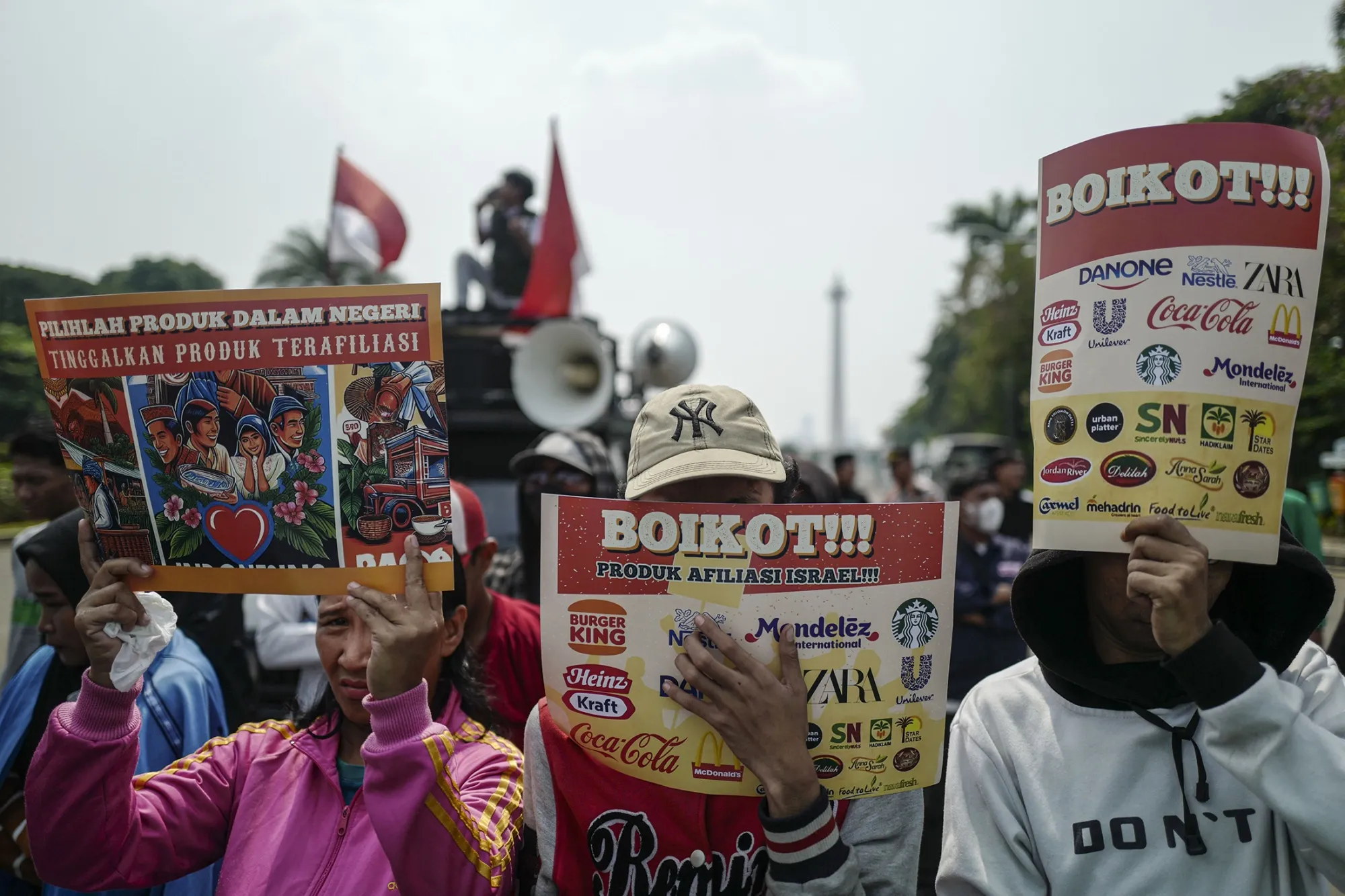 印度尼西亞雅加達,抗議者呼籲抵制與以色列有關聯的產品和企業。攝影師:Agoes Rudianto/Getty Images以色列國內對內塔尼亞胡的失望情緒也在增長。左傾政客指責政府和軍隊犯下戰爭罪行。多數民眾希望優先解決人質問題而非繼續戰爭。