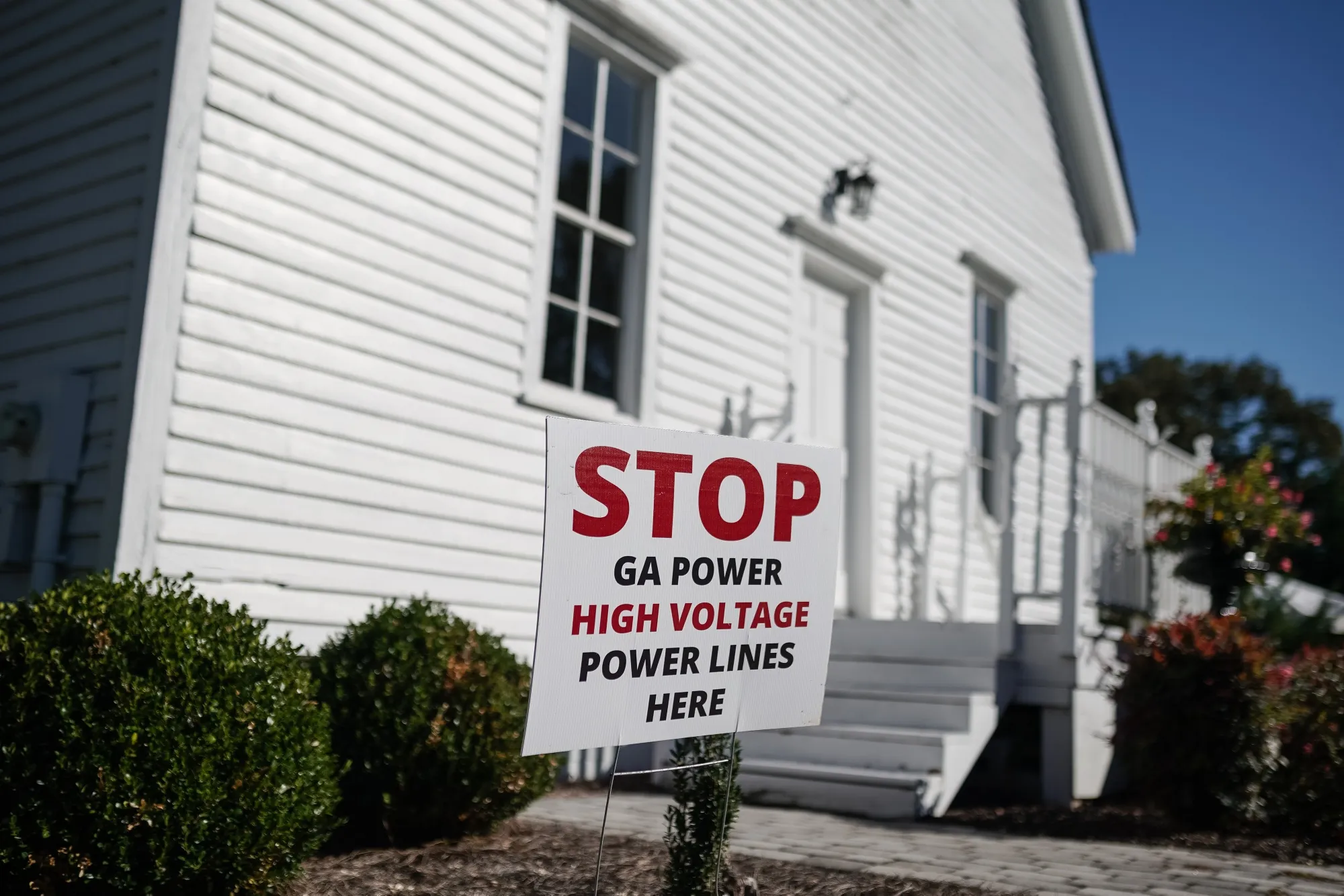 2024年10月17日週四,美國佐治亞州費耶特維爾市,希望原始浸信會教堂外反對佐治亞電力公司安裝高壓電線的標語。攝影師:Elijah Nouvelage/彭博社黑石集團於2021年同意以約100億美元收購數據中心運營商 QTS。此後,這家另類資產管理公司在佐治亞州費耶特維爾市規劃的數據中心項目因需架設電力線路而引發部分居民反對——據我同事Dawn Lim去年12月報道,這些線路將侵佔逾百處地產和住宅。這些數據中心讓當地居民切身感受到了AI革命帶來的部分代價。