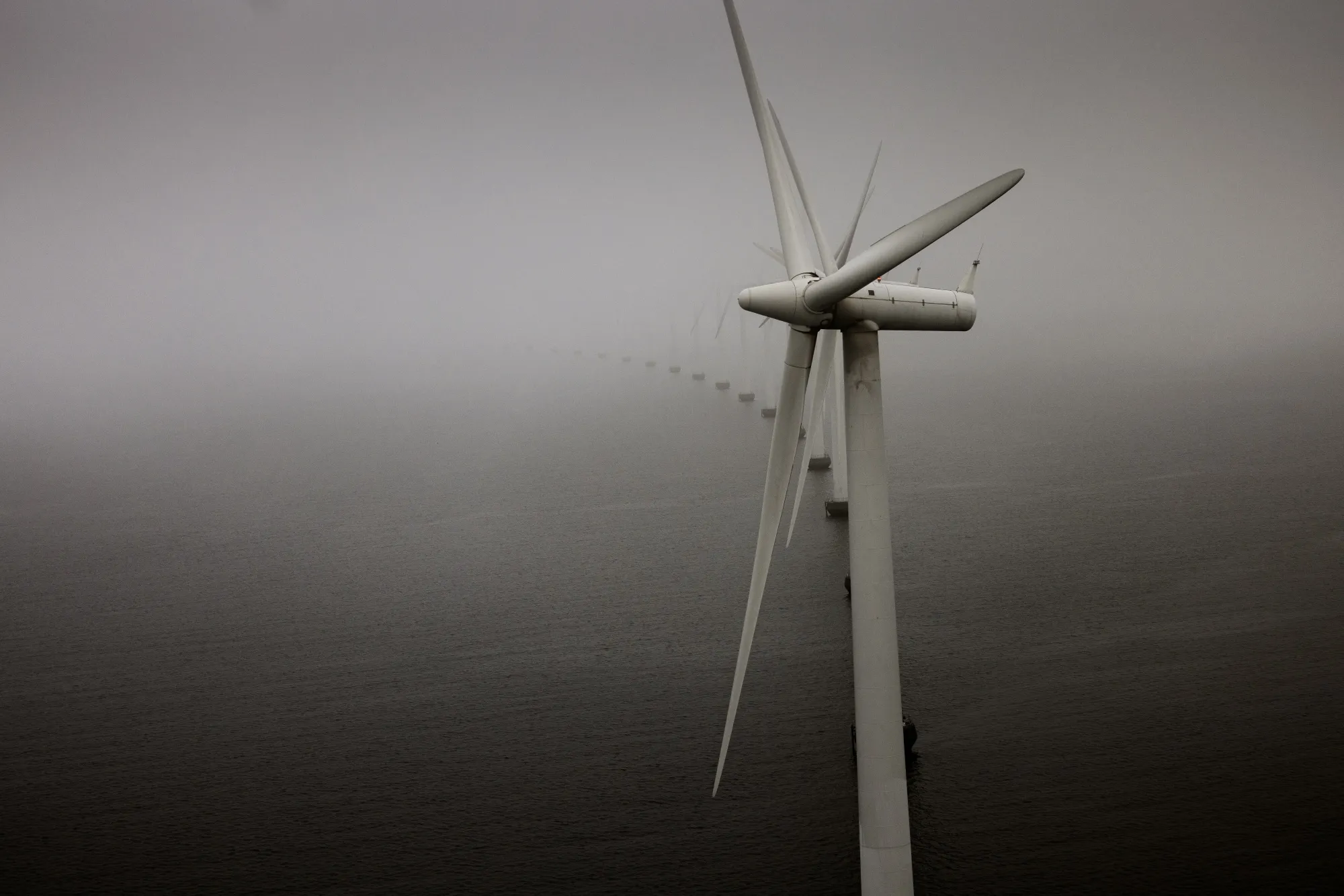 丹麥哥本哈根海岸外米德爾格倫風電場中的海上風力渦輪機。