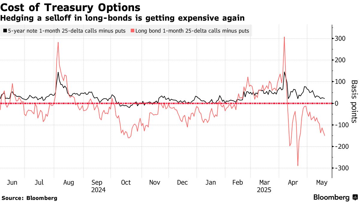 針對長期國債更大損失的保險成本已升至四月以來最高水平,當時特朗普激進貿易政策可能引發的經濟餘震曾震撼市場。