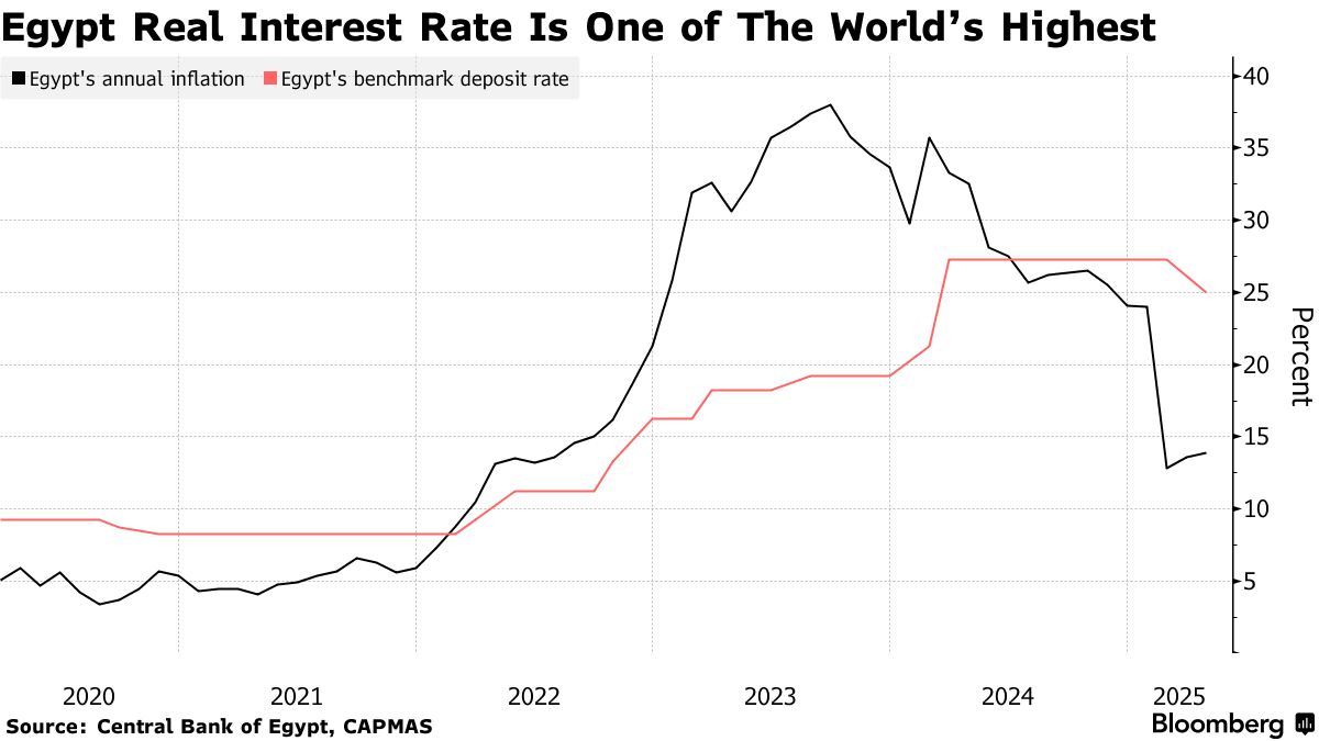 儘管通脹已連續兩個月小幅上升,且這個北非國家在4月實施了五年來的首次貨幣寬鬆政策,但兩者之間的差距——即所謂的實際利率——仍保持在約11%,位居全球最高水平之列。