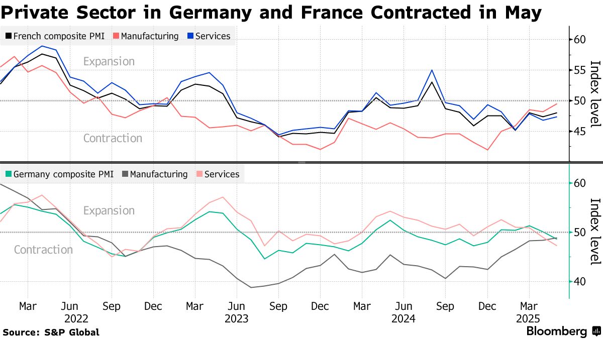 德國私營部門五月意外萎縮,服務業創下兩年半來最差表現,抵消了製造業的改善。