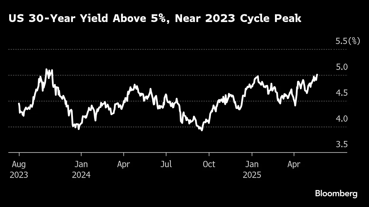 週三,他們將基準30年期美國國債收益率推高至5.1%,接近二十年來的最高水平,並引發股市和美元下跌。人們擔憂的是,在投資者對美國資產興趣全球性減弱的背景下,國會正在討論的税收法案將在未來幾年為美國本已高企的預算赤字再增加數萬億美元。