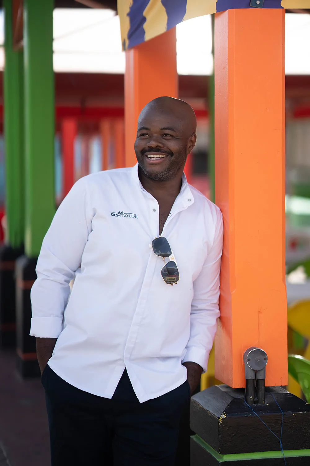 主廚多米尼克·泰勒在其新餐廳Marvee’s。圖片來源:Marvee’s美食商店如今泰勒在拉德布羅克格羅夫開設了新餐廳Marvee’s美食商店,以全新姿態致力於提升牙買加美食及更廣泛的加勒比菜系影響力,突破無限暢飲朗姆潘趣酒早午餐的固有印象。他通過改良經典菜式實現這一目標,如將傳統油炸小吃"節日餅"創新為節日華夫,並推出黑朗姆葡萄乾豬腩肉和香脆五香香蕉花等特色菜餚。