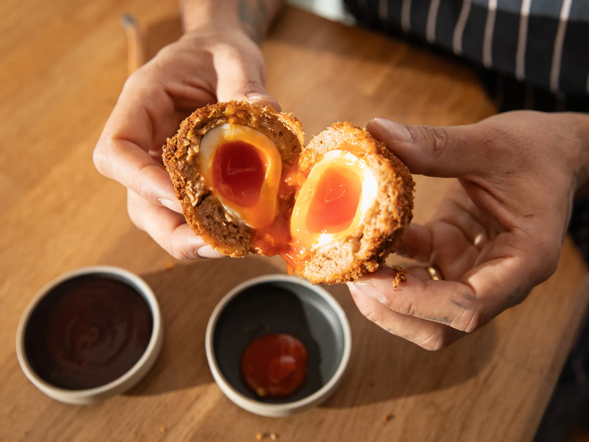 科克倫的招牌菜:混蛋雞蘇格蘭蛋。攝影師:克萊·威廉姆斯為彭博社拍攝“由於生活成本的上升,酒吧界正在經歷一場巨大的復興,”科克倫觀察到。“但通過更輕鬆的方式,你可以創造出既喚起懷舊情感,又結合了英國西印度傳統的菜餚。”