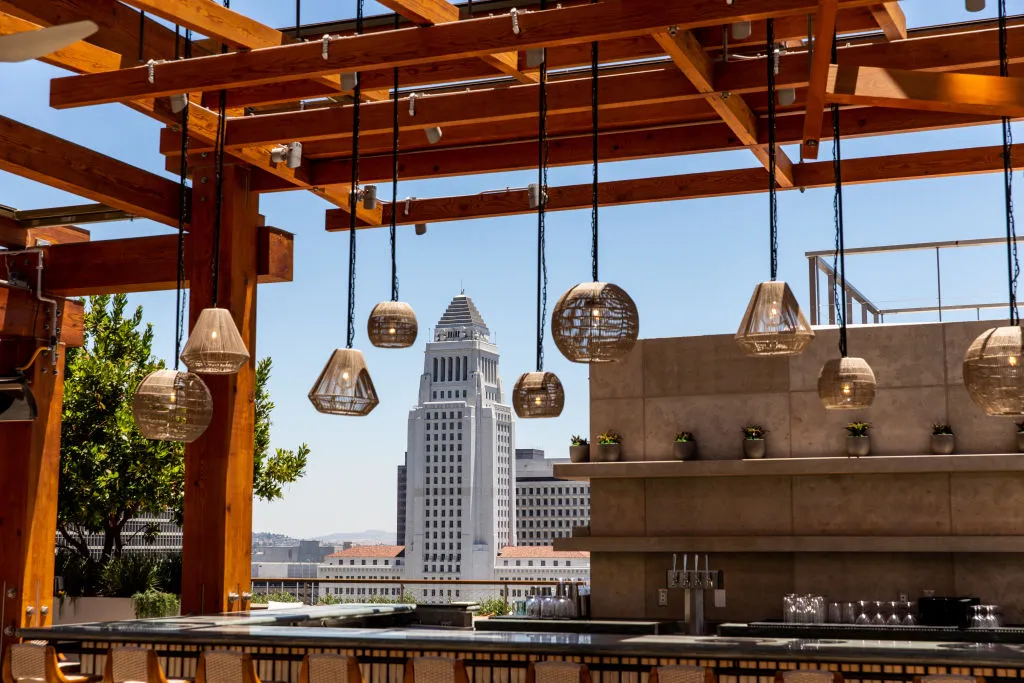 從大洛杉磯項目組成部分——康萊德洛杉磯酒店10樓Airlight餐廳俯瞰的景色。攝影師:傑伊·L·克萊登/《洛杉磯時報》通過蓋蒂圖片社